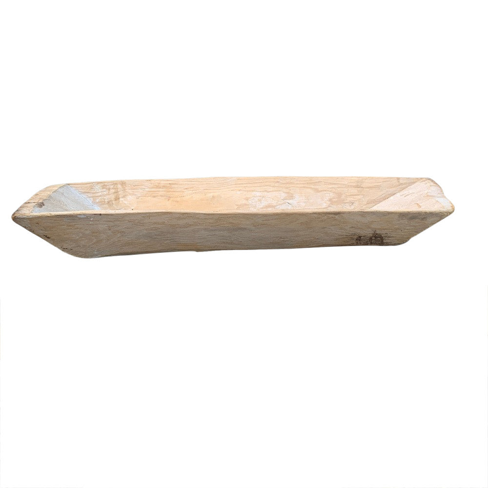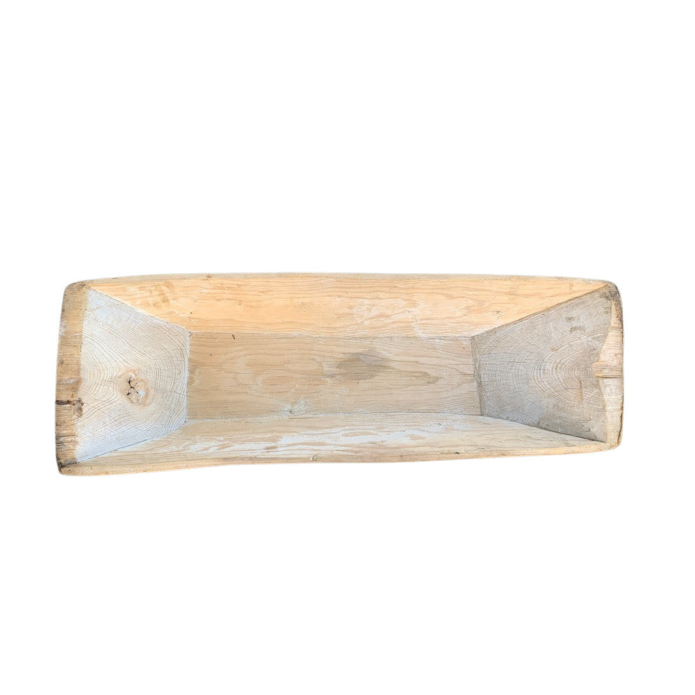 This rectangular dough bowl is well over 100 years old. It was used to make flatbread and a few other forms as well. This dough bowl is rustic and perfect in its subtle imperfection.
