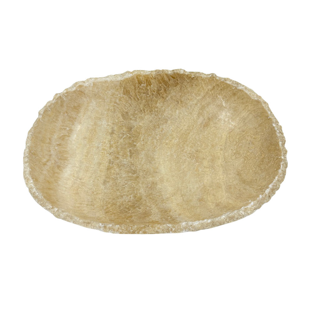 Each one-of-a-kind premium natural onyx bowl is hand-carved by artisans in Indonesia. No two are a like and will vary in tones. Featuring gorgeous gradient patterns and an organic freeform shape and live edge, it adds just the right amount natural beauty and texture to your environment.