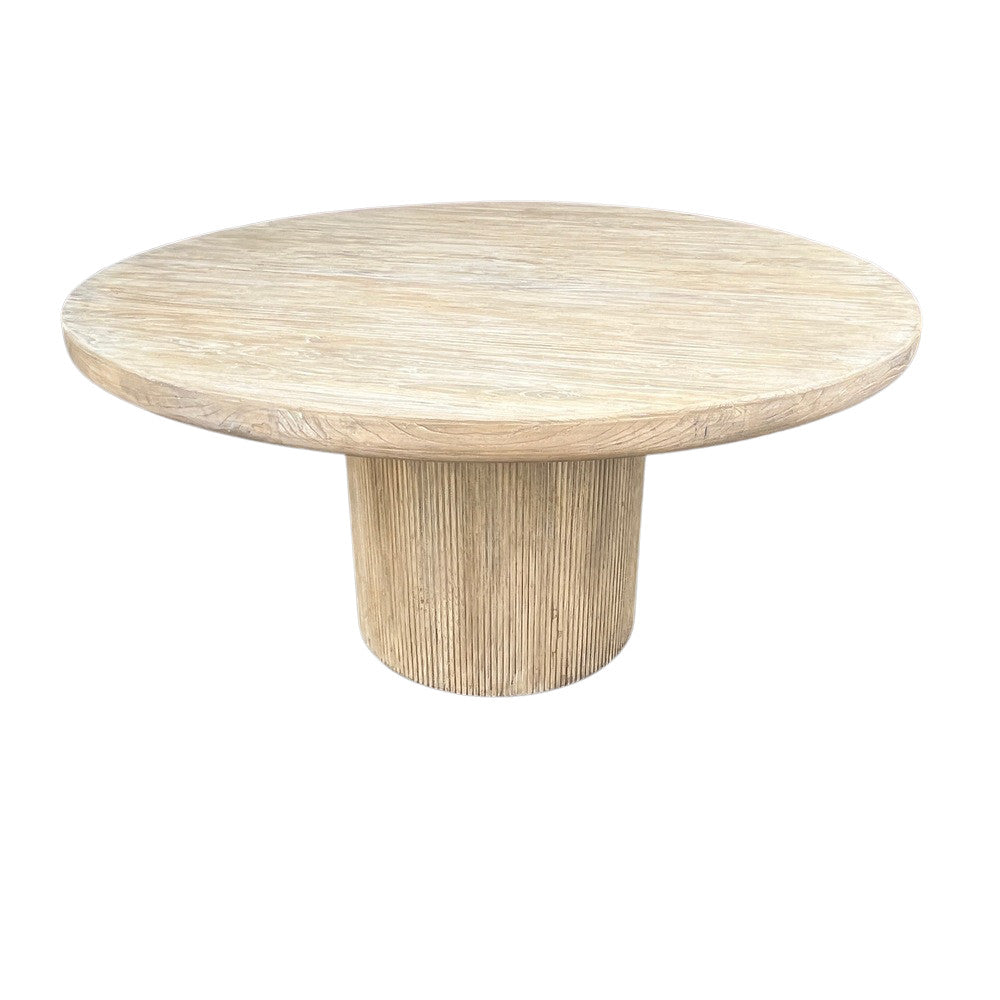 Experience the timeless appeal of the Elmwood Round Dining Table, a masterpiece of simplicity and elegance. Crafted from sturdy Elmwood with a natural finish, this table exudes warmth and sophistication. Its round design fosters a sense of intimacy and conviviality, perfect for gatherings with loved ones. The ribbed base adds a touch of texture and visual interest, elevating its aesthetic appeal. Embrace the essence of Chinese craftsmanship and tradition with this exquisite dining table, a focal point that seamlessly blends style and functionality in any dining space.