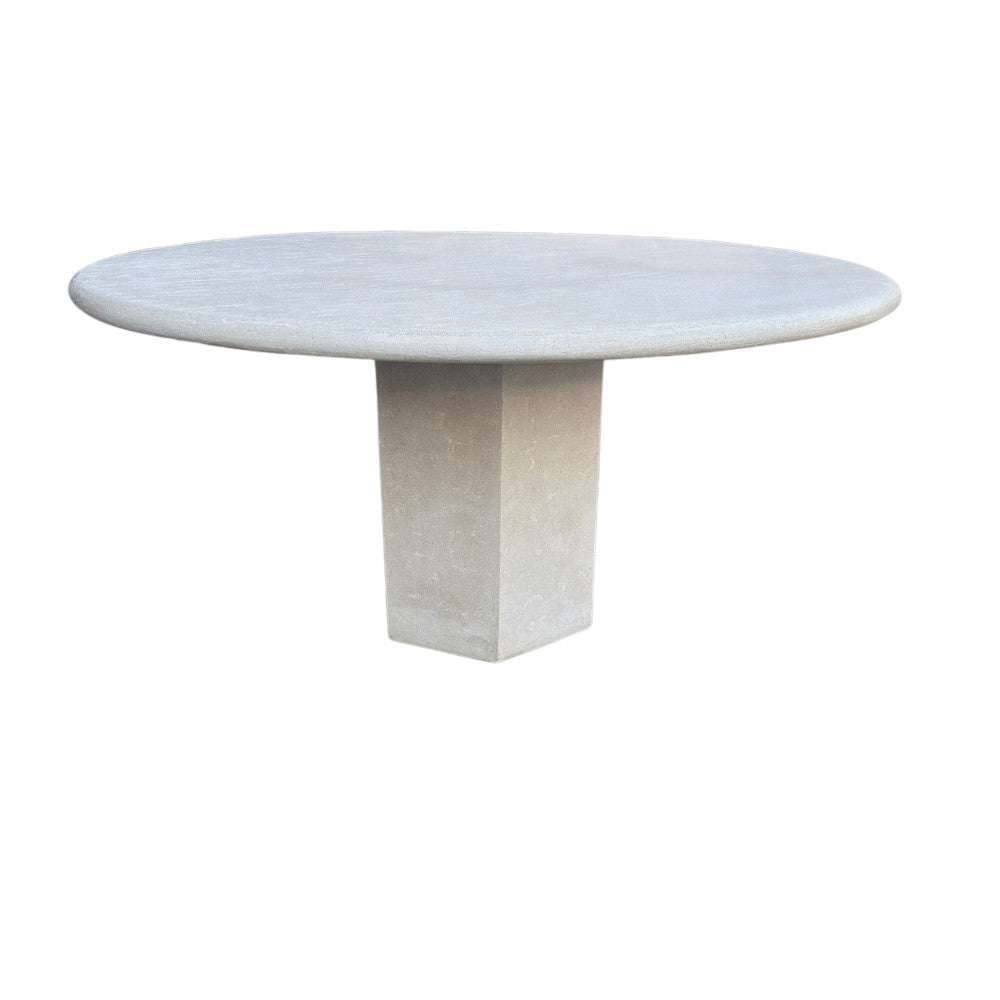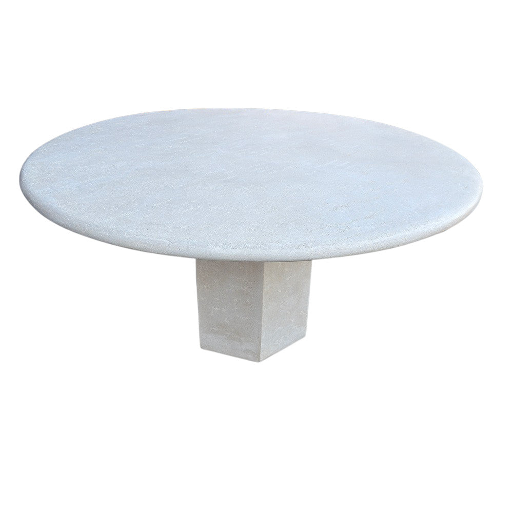 This dining table from Indonesia features a sleek faux travertine finish that captures the look of natural stone. With clean lines and a smooth surface, it offers modern style with easy maintenance. Perfect for both casual meals and elegant gatherings, it brings a sophisticated touch to any dining space.