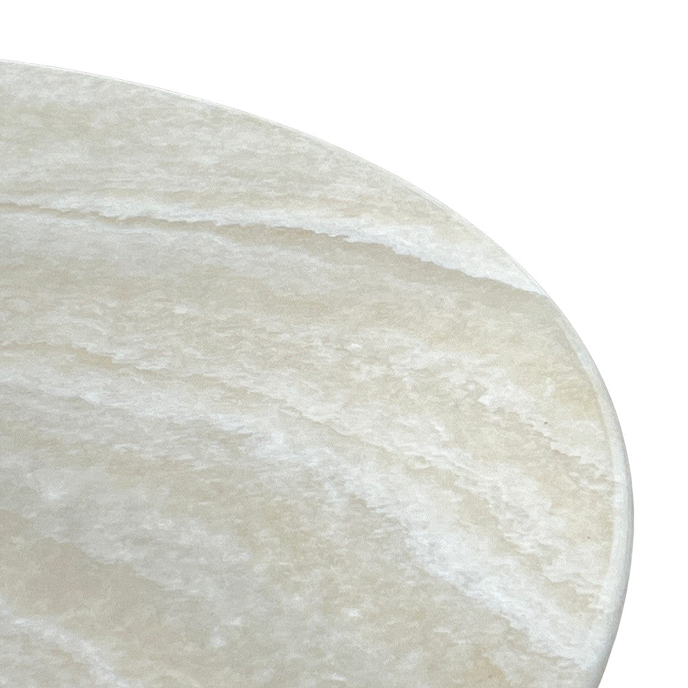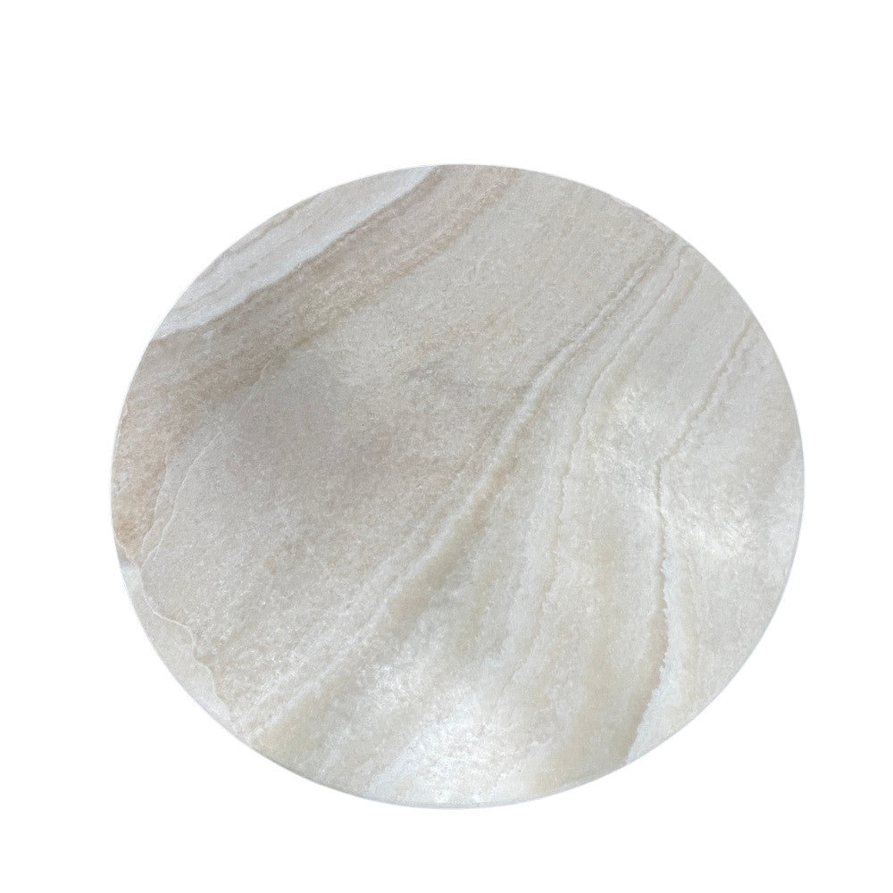 This minimalist table is fabricated from beautifully polished onyx and securely balances on an elegant wood base. Aesthetically unique, no two tables are alike and is a luxurious addition to any modern space. An organic feel with its tones and sleek texture, it simple allows the onyx's bare beauty to boldly shine through.