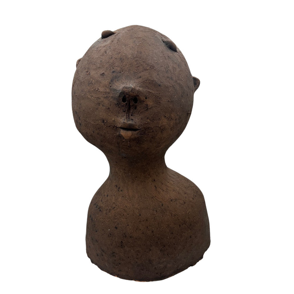 A sculpture that straddles the modern and primitive hemisphere of artistic expression,this one-of-kind sculpture by an artisan from Thailand is the epitome of objet d'art. Hand sculpted from terra cotta, no two are alike and each one has their own unique presence.