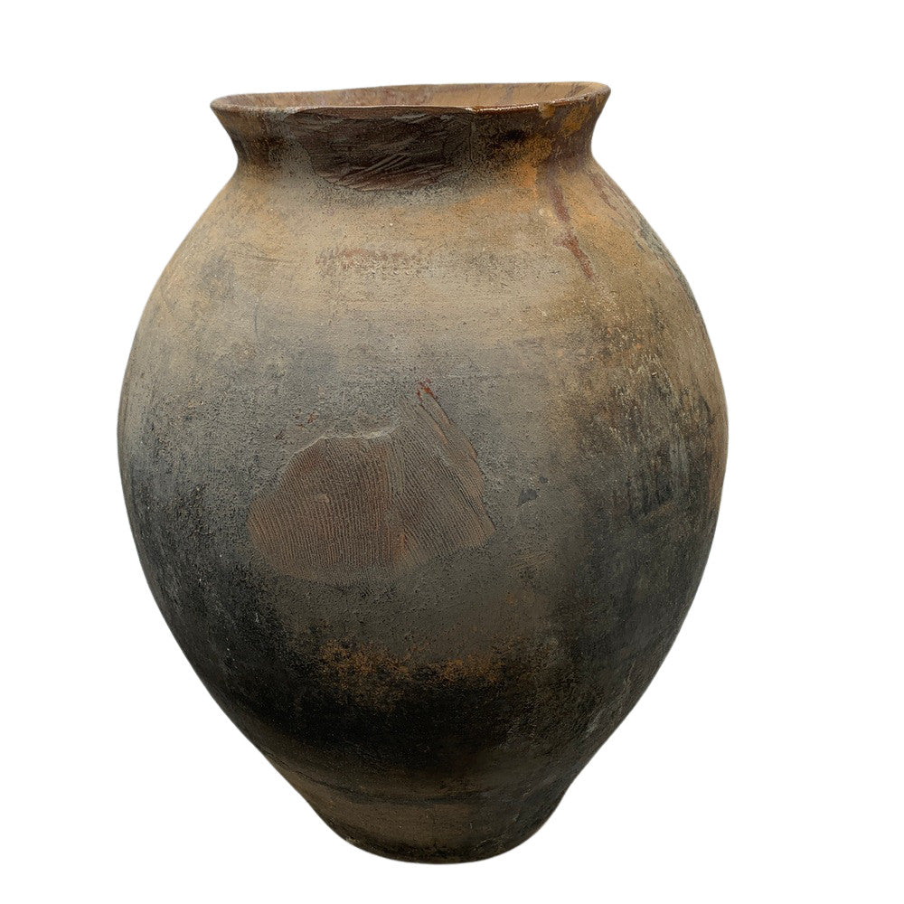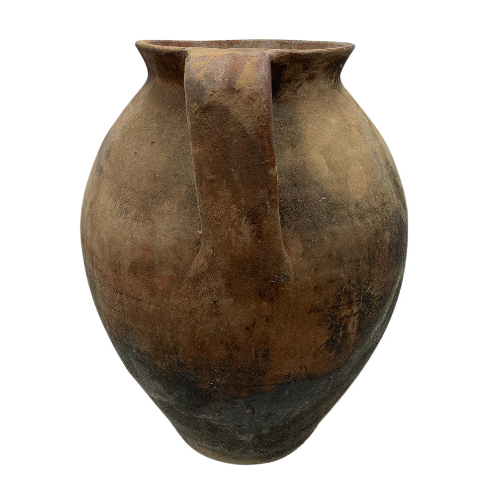 This antique one-handle terra cotta vessel from Hungary is a wonderful addition to any Farmhouse decor. The rustic pottery showcases a subtle hand-painted Hungarian Folk Art design peaking through the natural terra cotta tones of the vessel. The visible blackening on the pot is a sign that this pot was used for cooking and held over an open fire. Whether you are adding to your Farmhouse home or displaying as an accent piece, this natural beauty is sure to enhance your environment.