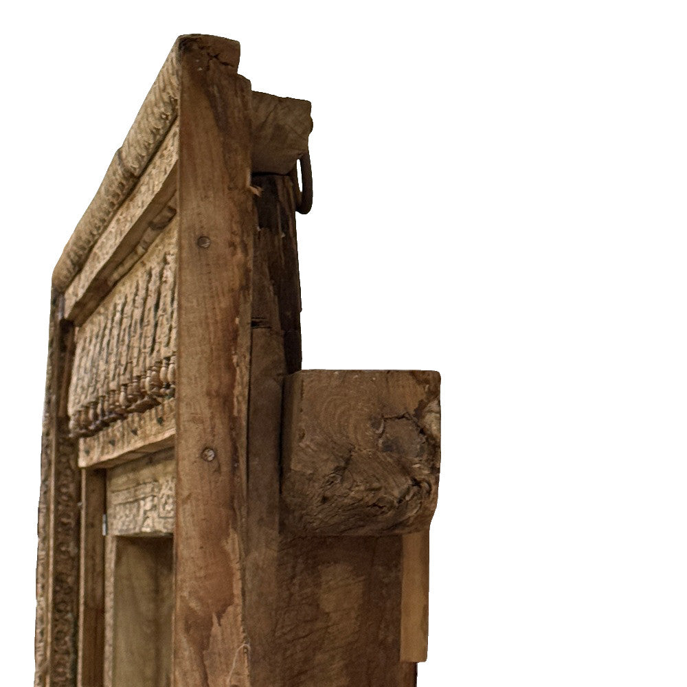 You won't find details such as these in just any mirror. This beautiful antique window frame from Rajasthan has been repurposed into a stunning floor length mirror. It features intricately hand-carved floral, filigree and spindle details that are truly unique. The slightly sanded down wood frame only adds to the beauty of this piece to showcase all these amazing details.