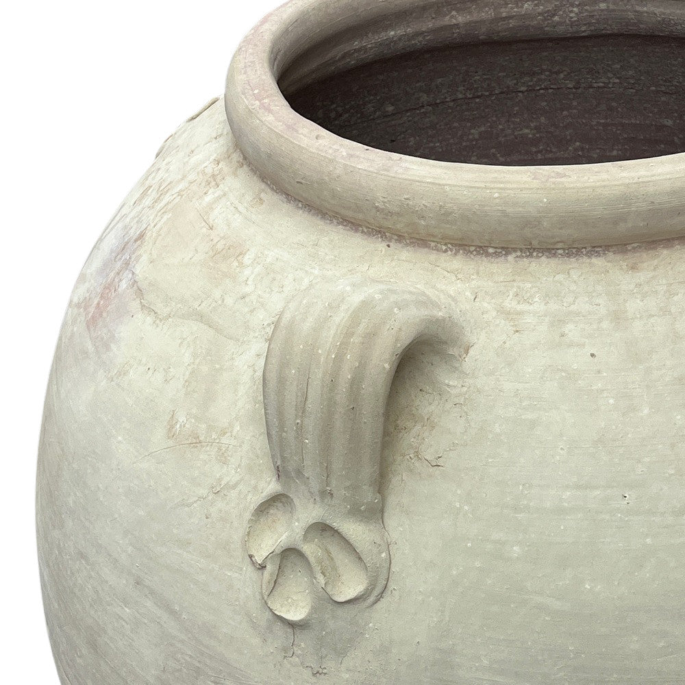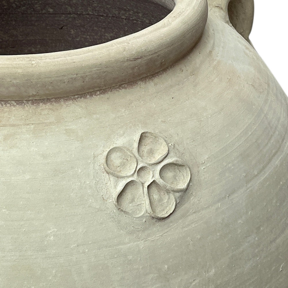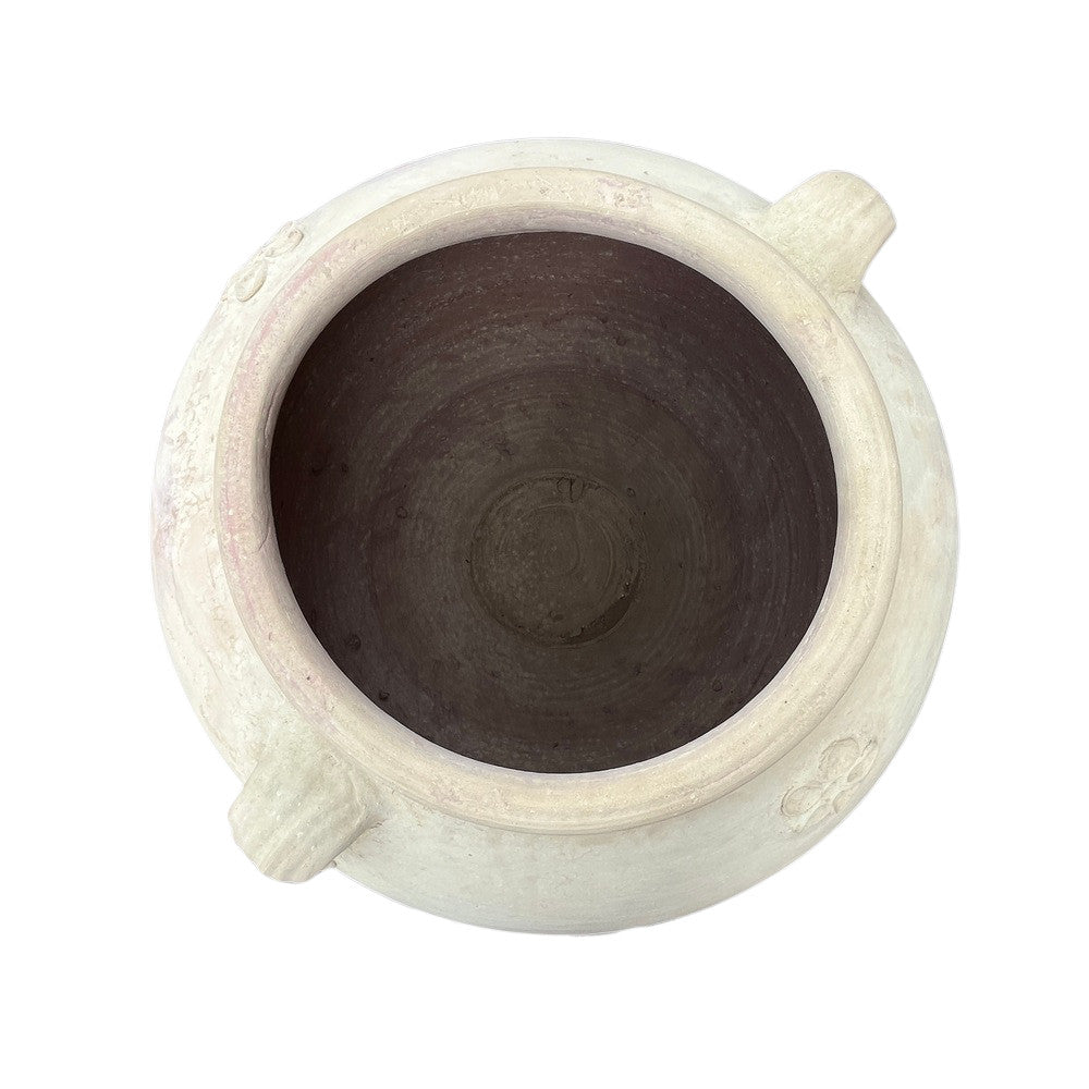 The Jarre Sicilya terracotta planter from Tunisia is a beautifully crafted gardening accessory made from high-quality clay. Known for its durability and moisture-regulating properties, it's ideal for various plants. The planter's intricate patterns reflect Tunisian craftsmanship, adding a touch of Mediterranean style to any space. With its porous nature, it promotes healthy root growth and serves as a unique, eye-catching addition to your plant display, combining functionality and artistic appeal.