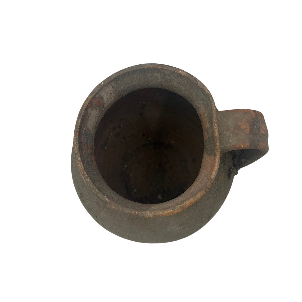 This antique one-handle terra cotta vessel from Hungary is a wonderful addition to any Farmhouse decor. The rustic pottery showcases a subtle hand-painted Hungarian Folk Art design peaking through the natural terra cotta tones of the vessel. Whether you are adding to your Farmhouse home or displaying as an accent piece, this natural beauty is sure to enhance your environment.