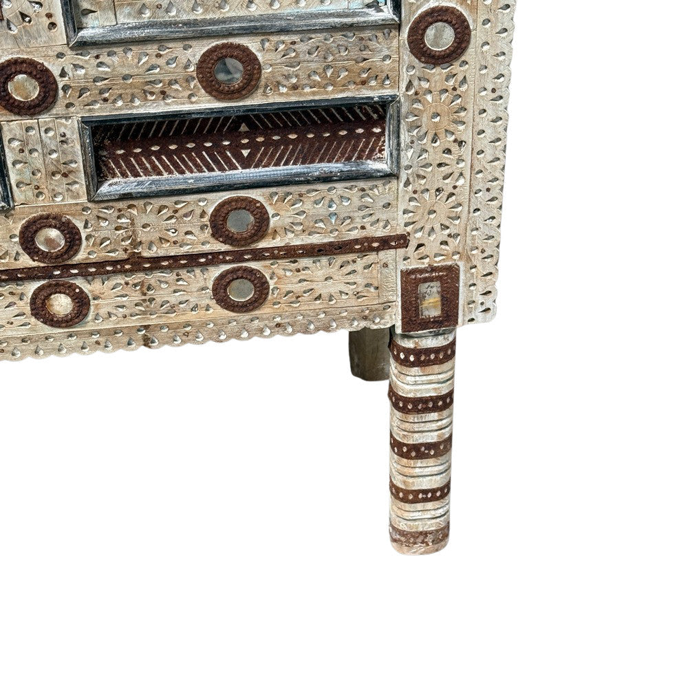 The damachiya (a dowry or hope chest) is a testament to the traditions of days past. Each were individually commissioned and built with such love and detail, then filled with clothes and linens in anticipation of married life. This particular one was collected in Rajasthan where this level of fine carving and detail is more prevalent. What amazing care and craftsmanship!