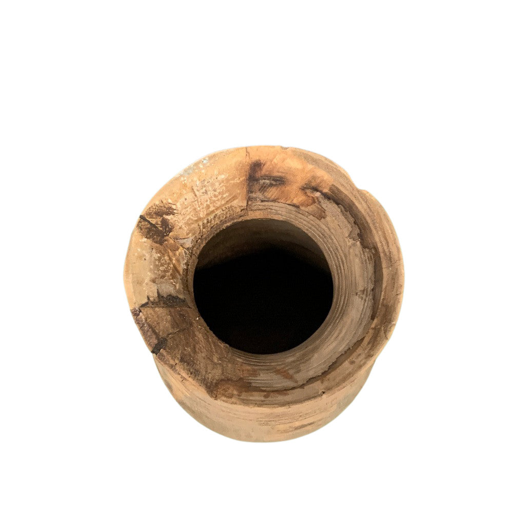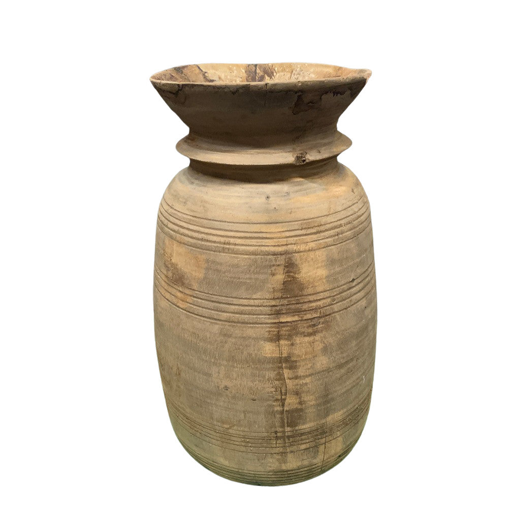 These milk pots are truly special and when one considers they were carved from a single piece of wood many years ago, it makes them all the more special. The narrow top is specifically made to serve its purpose as a storage container. Great for on a mantle or with some decorative reeds, these are works of art!