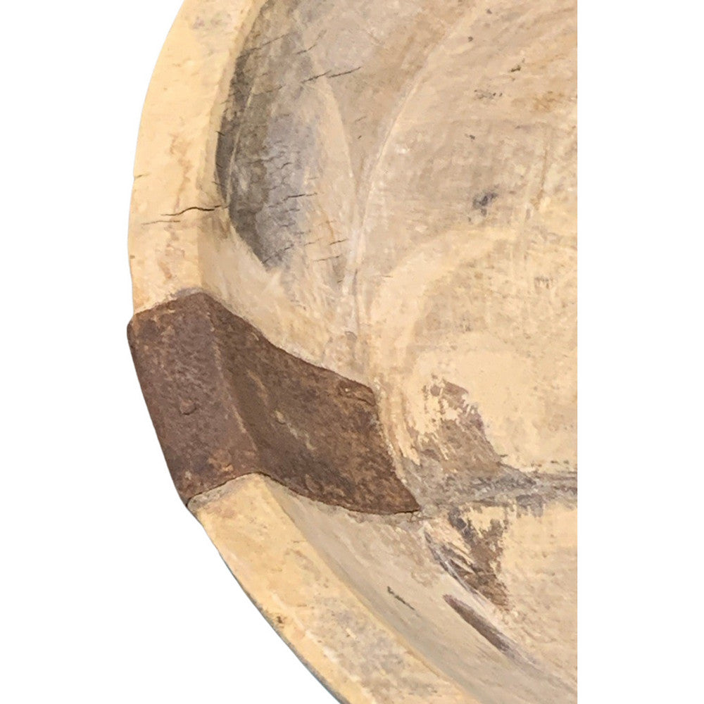 This vintage natural wood Parat bowl from India was once used to knead bread dough. It is a beautiful rustic piece and can be used as a decorative bowl to hold fruit or other items. A wonderful addition to your Farmhouse or Boho Chic environment.