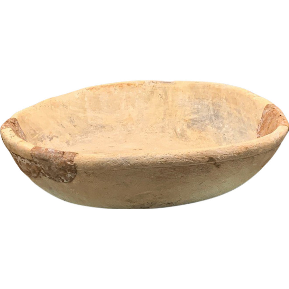 This vintage natural wood Parat bowl from India was once used to knead bread dough. It is a beautiful rustic piece and can be used as a decorative bowl to hold fruit or other items. A wonderful addition to your Farmhouse or Boho Chic environment.