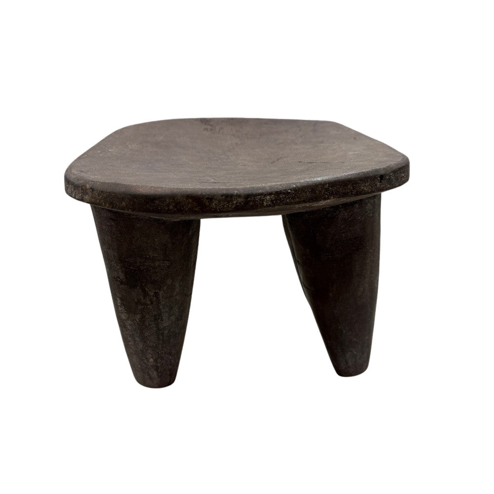 This rustic mini Senufo milk stool is a handcrafted piece traditionally used by the Senufo people of West Africa. Carved from a single block of wood, it features a simple, low-profile design with rich natural patina. Its rustic charm and cultural heritage make it a striking accent for any space.