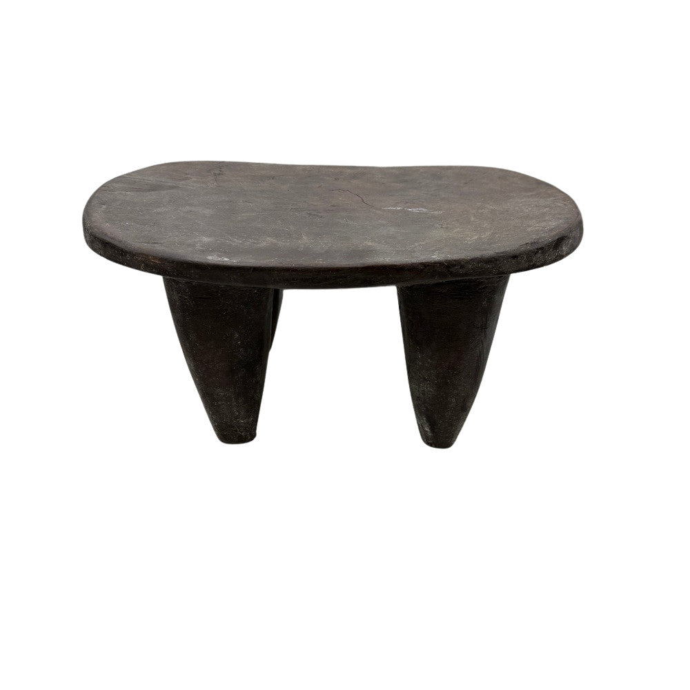 This rustic mini Senufo milk stool is a handcrafted piece traditionally used by the Senufo people of West Africa. Carved from a single block of wood, it features a simple, low-profile design with rich natural patina. Its rustic charm and cultural heritage make it a striking accent for any space.