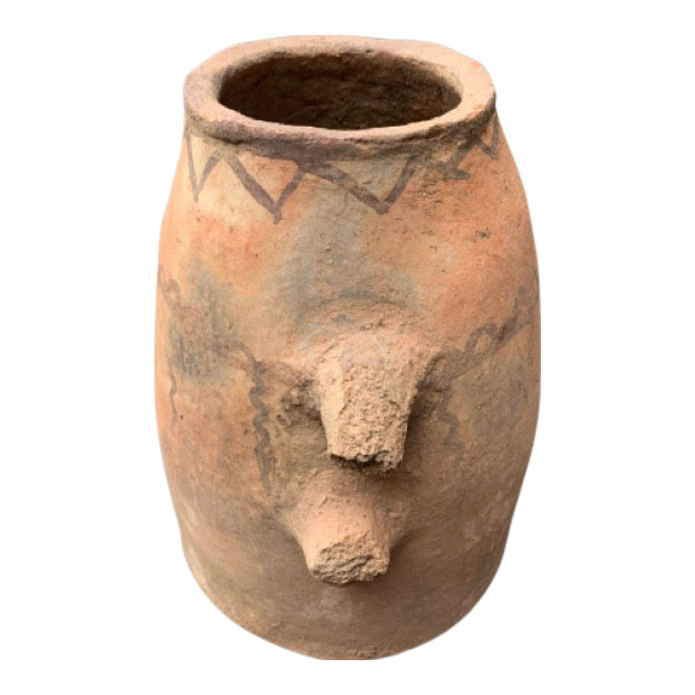 Vintage Moroccan Terracotta Tribal Jar With Handles