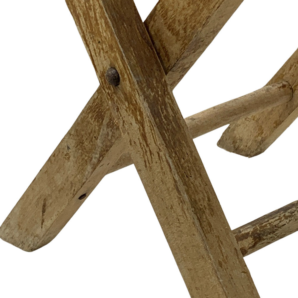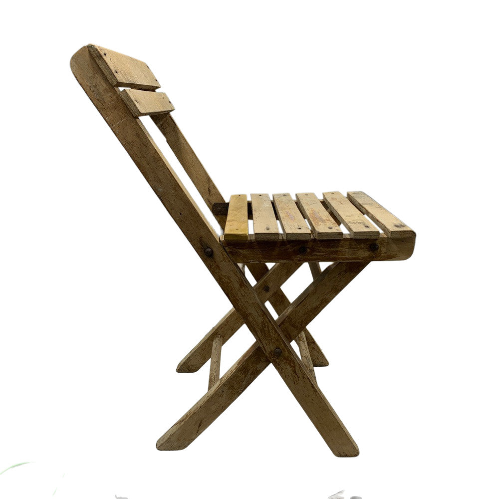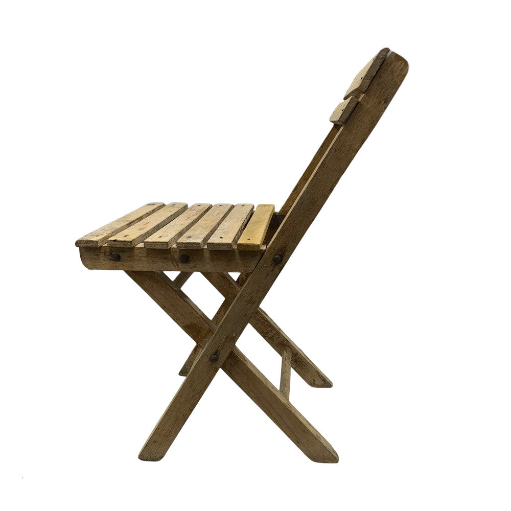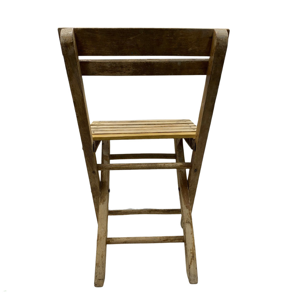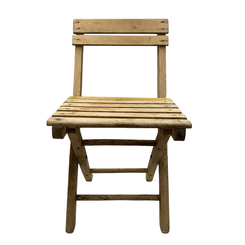 This sturdy vintage children's chair features a slender slatted wood seat and back. The natural wood tones have a great patina and the chair is light weight enough to move around throughout your space. This a great little chair to add to your rustic or farmhouse decor.