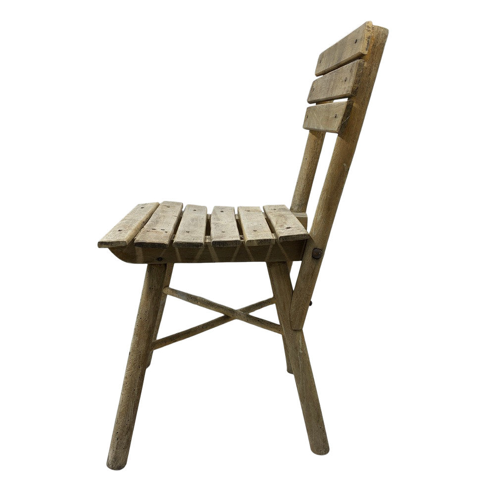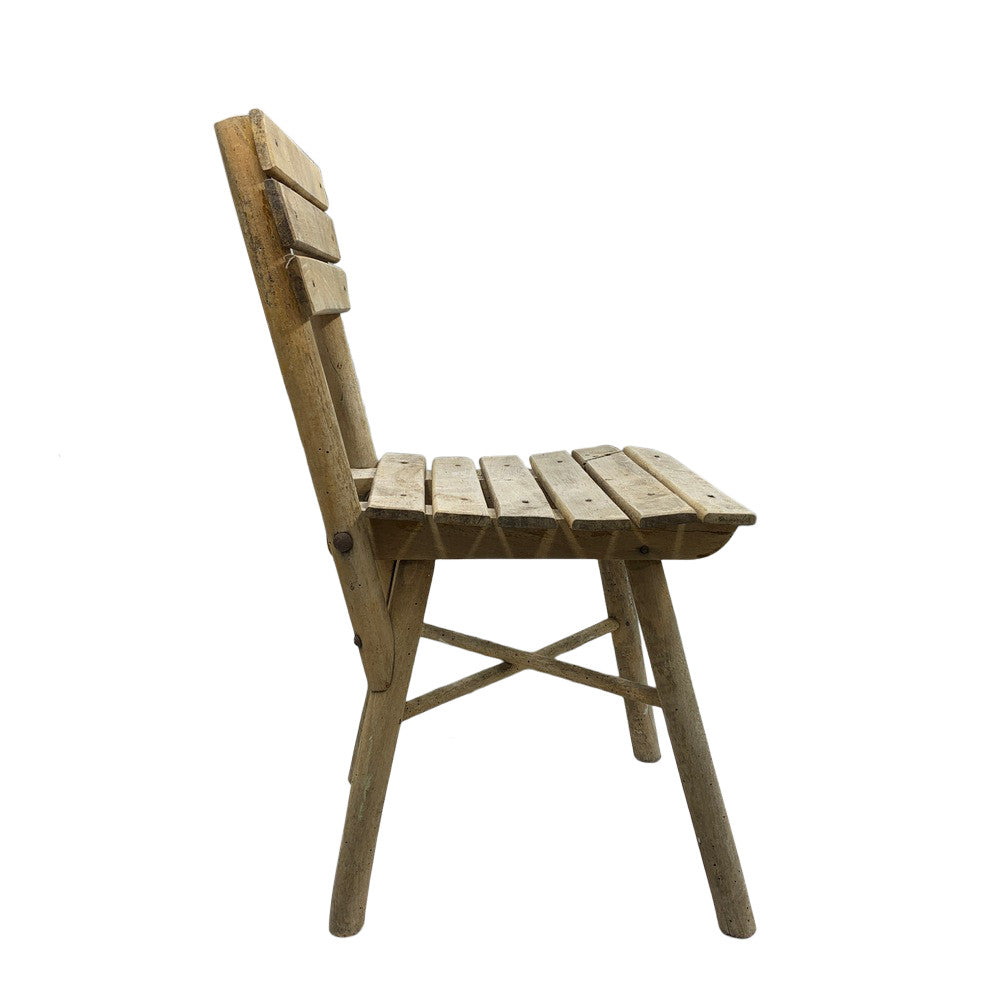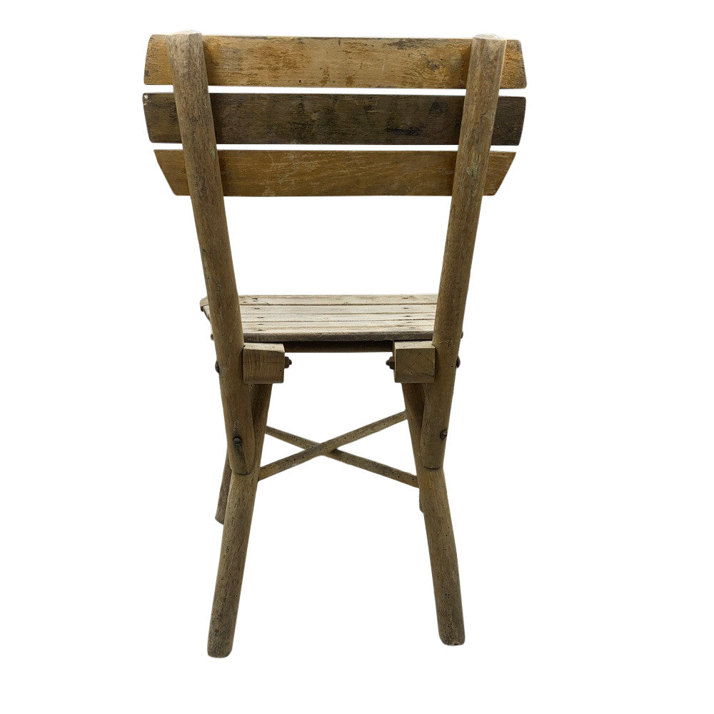 These sturdy vintage children's chair features a slender slatted wood seat and back. The natural wood tones have a great patina and is a perfect little chair to add to your rustic or farmhouse decor.