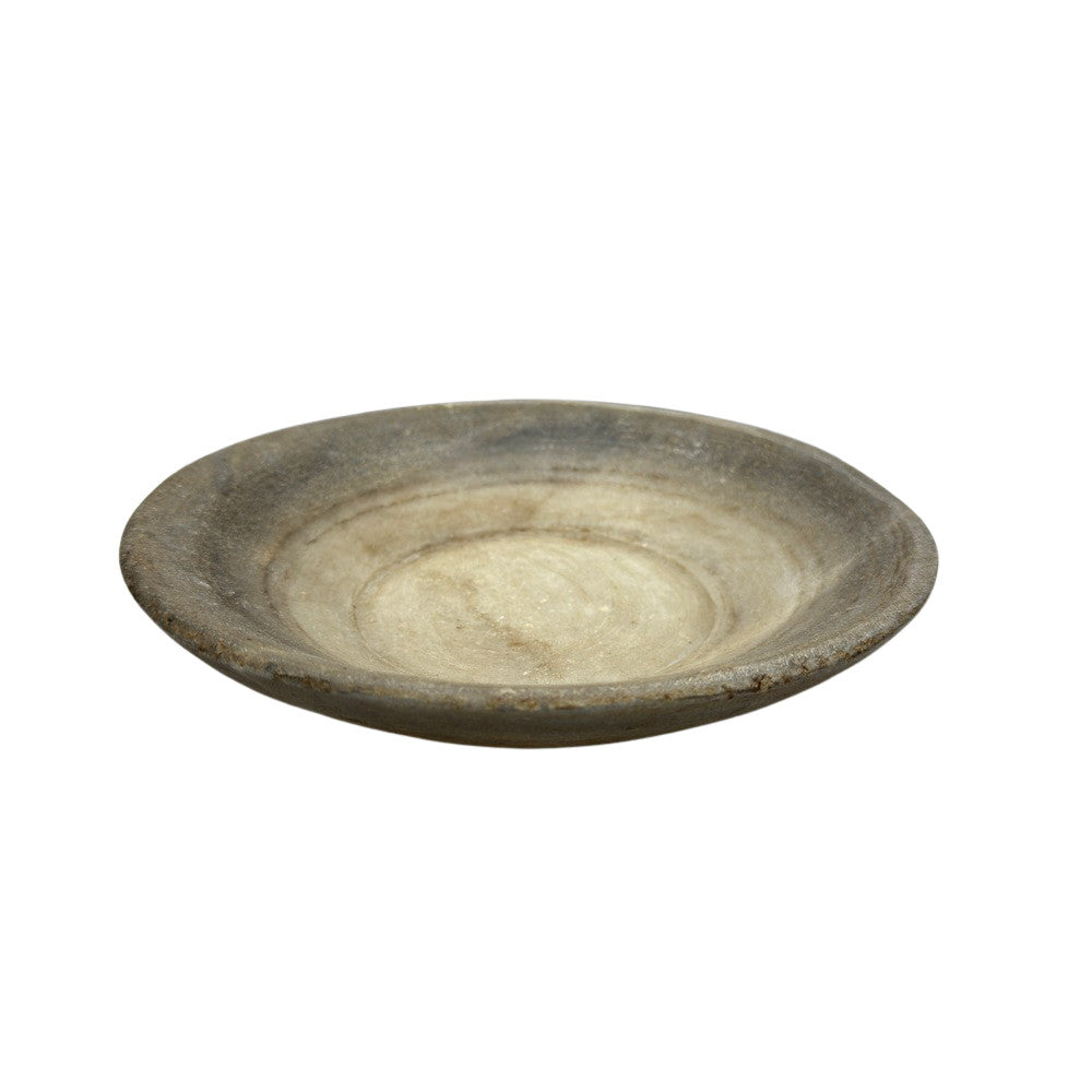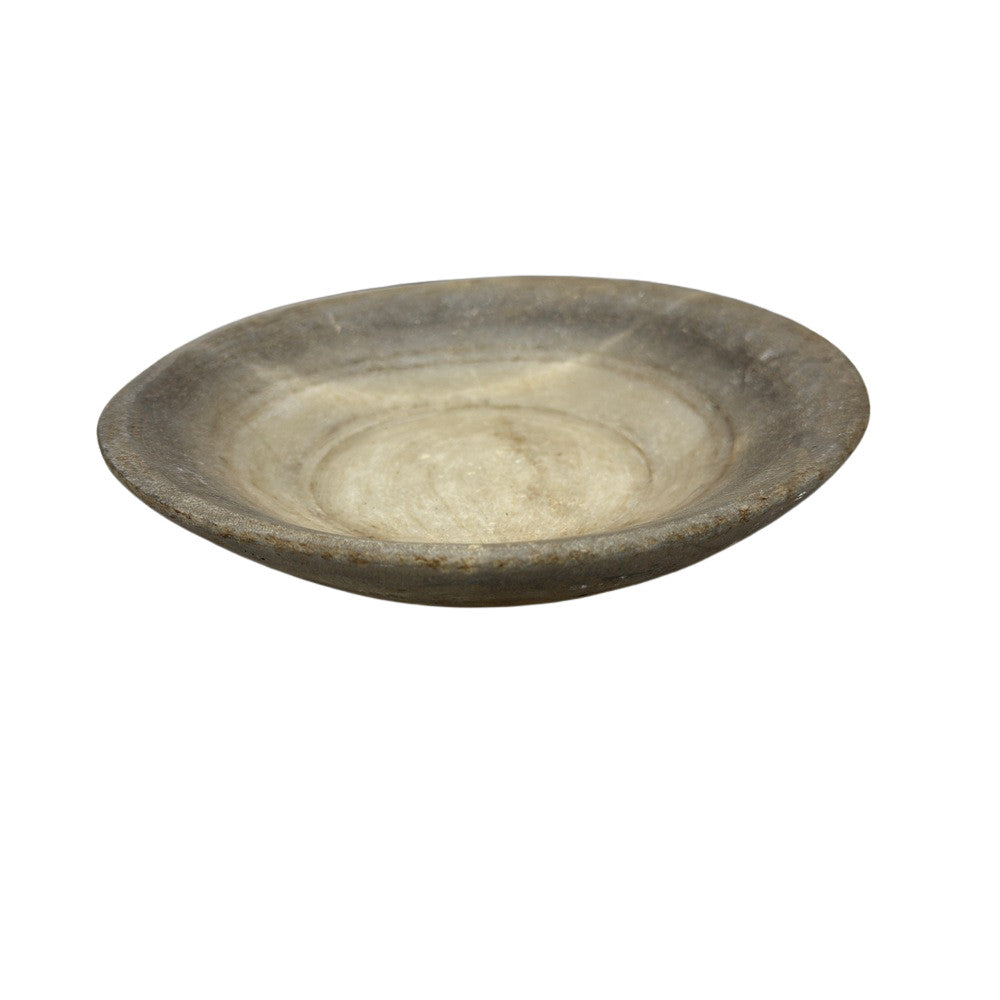 This vintage handcrafted decorative plate is hand carved by artisans from India from one piece of stone. A unique plate that works in any design space is a must-have decorative accent to your environment. The natural patina that only comes from age and use, adds to the beauty of this piece.