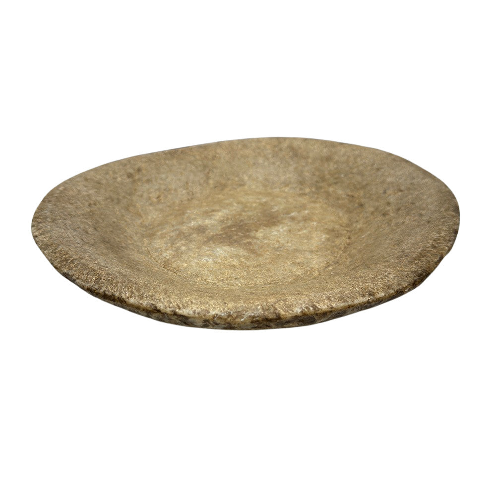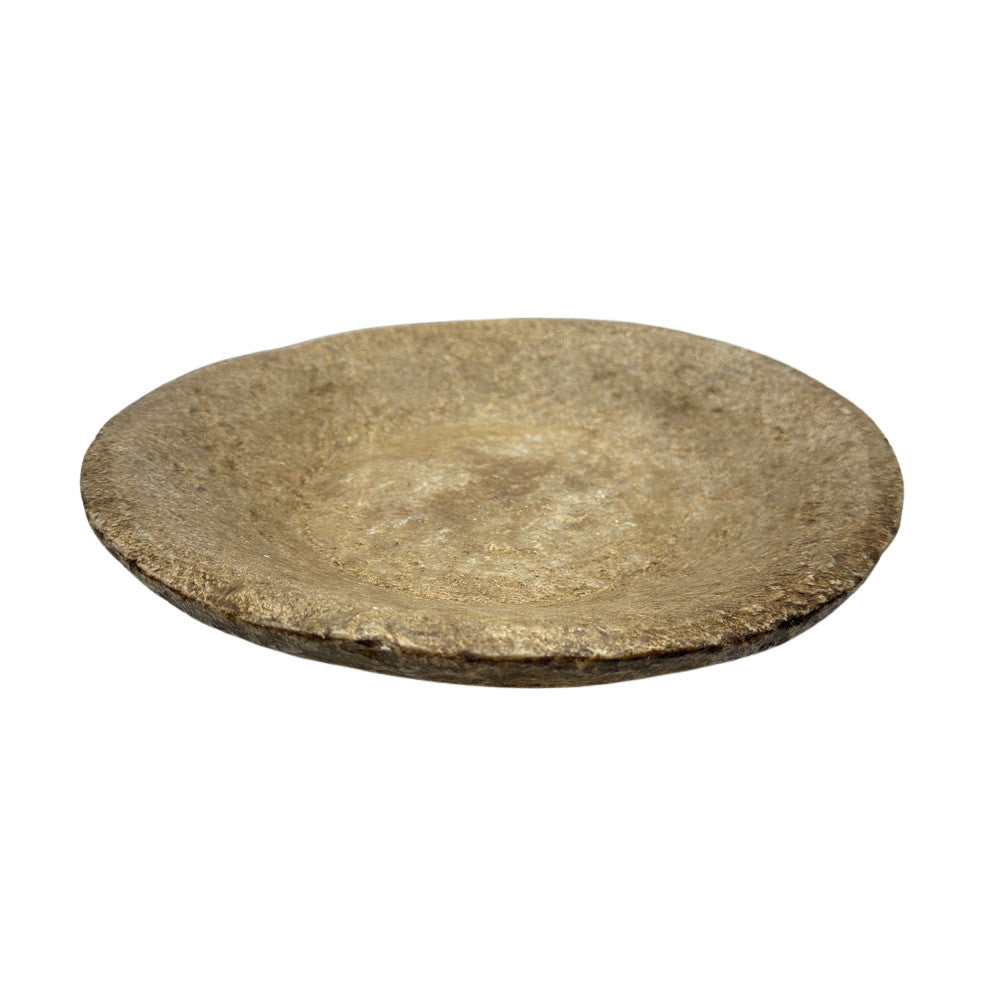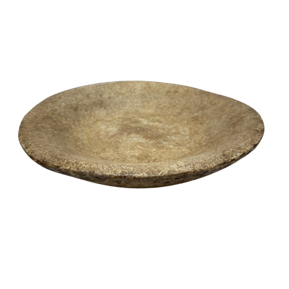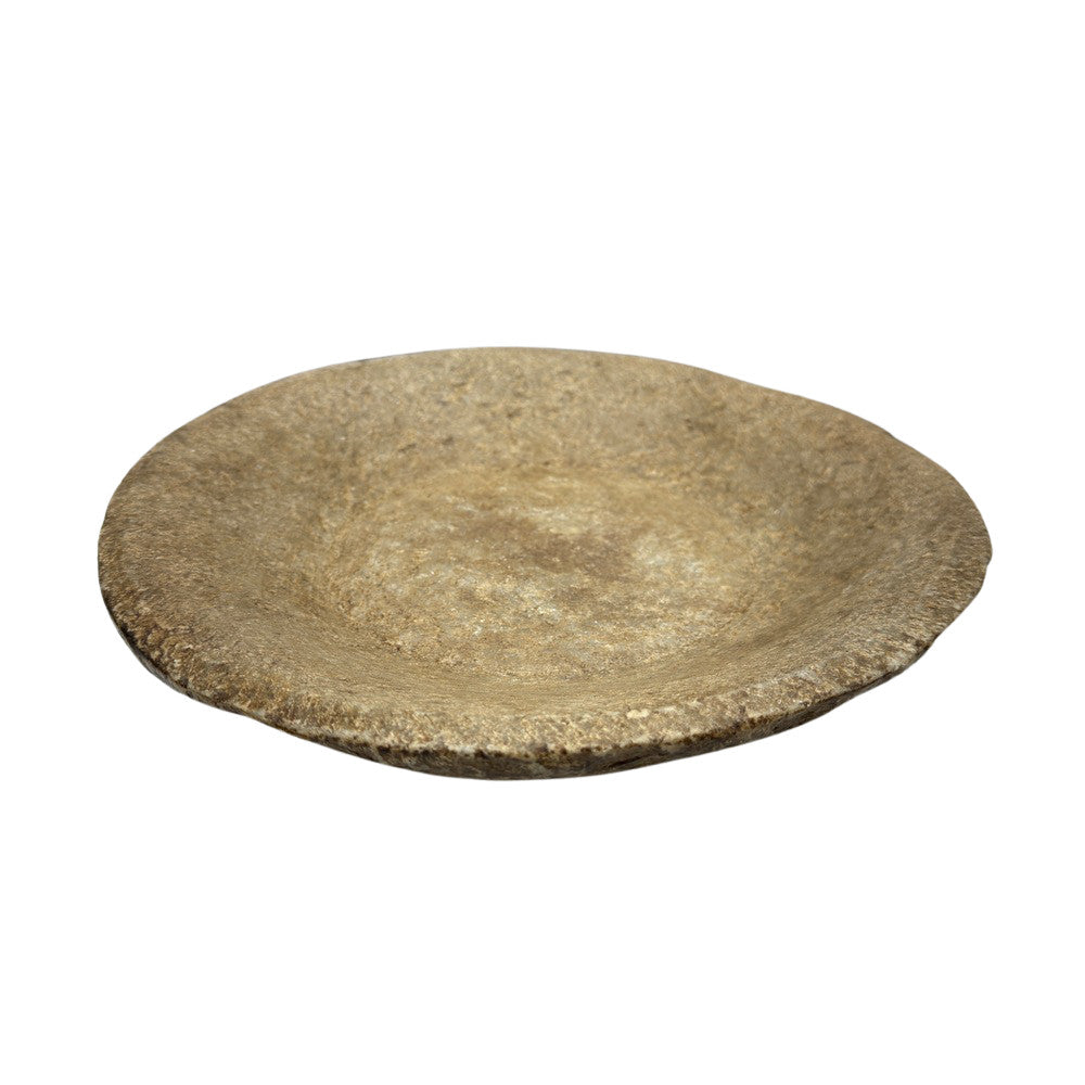 This vintage handcrafted decorative plate is hand carved by artisans from India from one piece of stone. A unique plate that works in any design space is a must-have decorative accent to your environment. The natural patina that only comes from age and use, adds to the beauty of this piece.