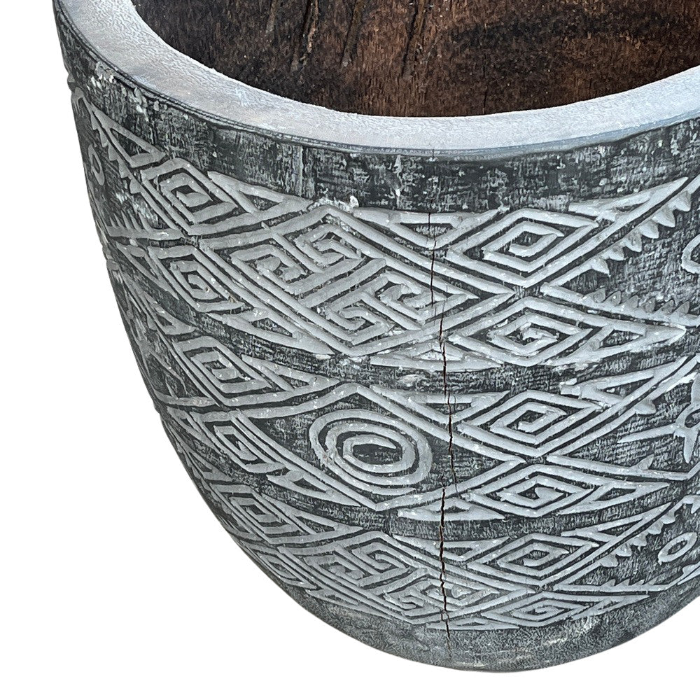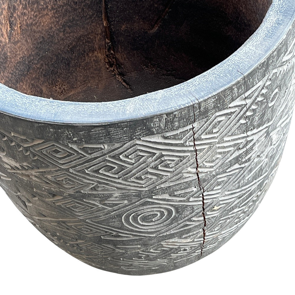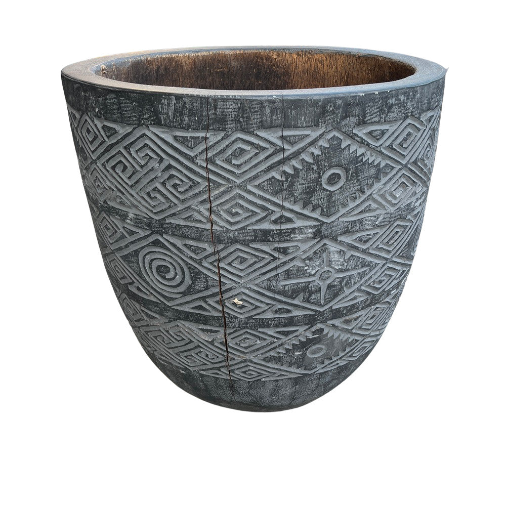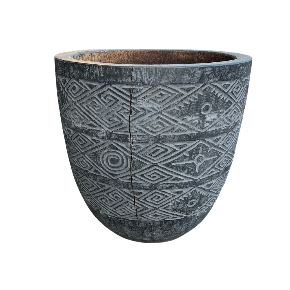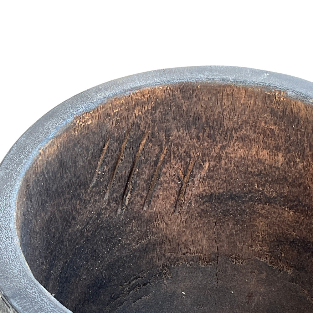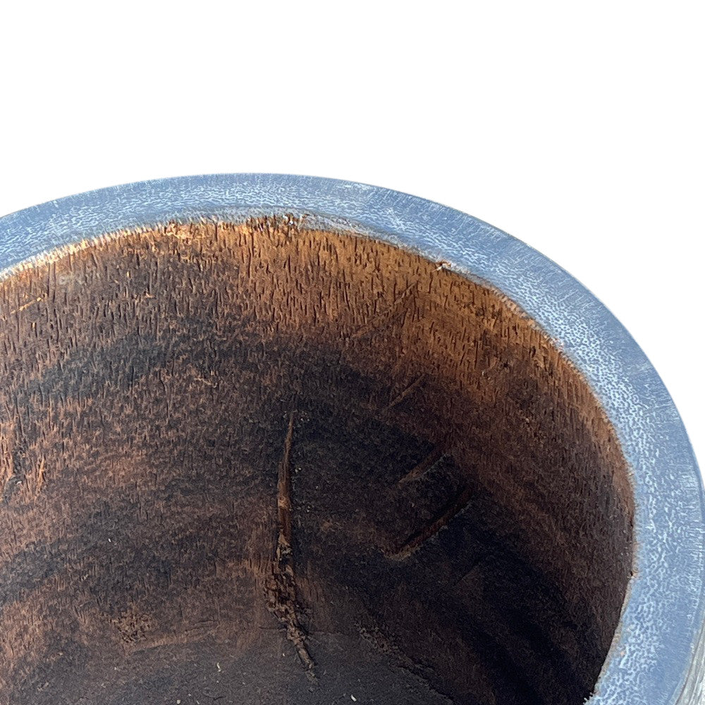 The vintage wooden palm pot from India is a uniquely crafted decorative piece that embodies Indian craftsmanship. Made from seasoned hardwood and intricately carved with traditional motifs, it exudes rustic elegance. This versatile pot can serve as a planter or a captivating decor item. Its vintage charm and intricate carvings reflect India's rich heritage, making it a unique addition to any space, adding warmth and history to your decor.