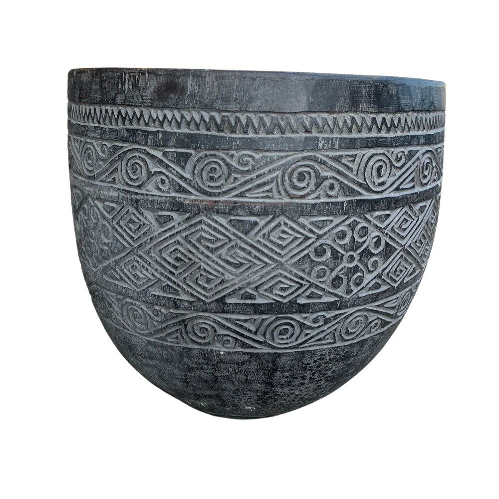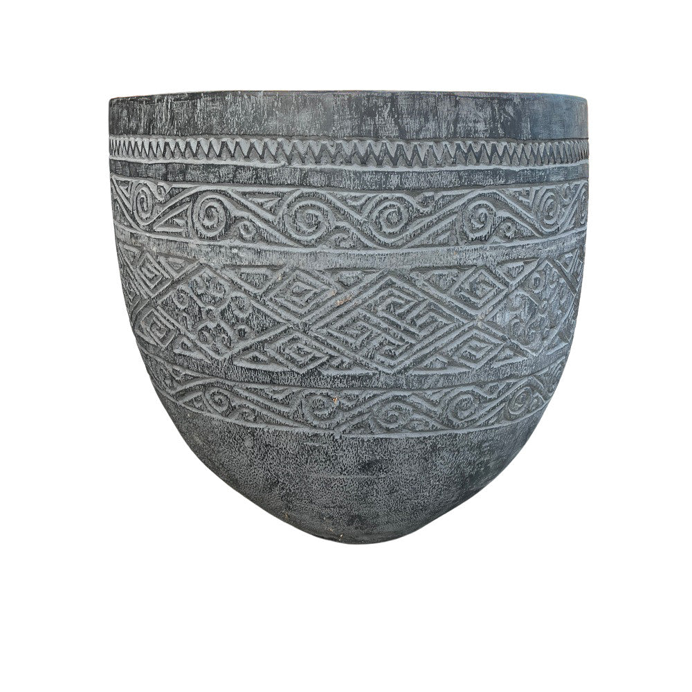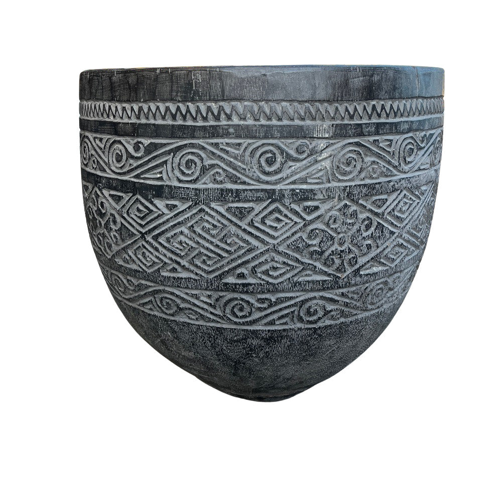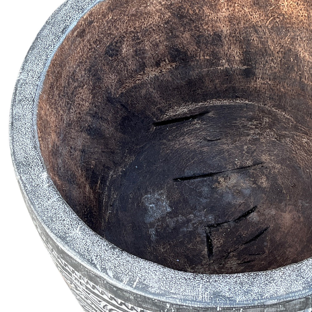The vintage wooden palm pot from India is a uniquely crafted decorative piece that embodies Indian craftsmanship. Made from seasoned hardwood and intricately carved with traditional motifs, it exudes rustic elegance. This versatile pot can serve as a planter or a captivating decor item. Its vintage charm and intricate carvings reflect India's rich heritage, making it a unique addition to any space, adding warmth and history to your decor.