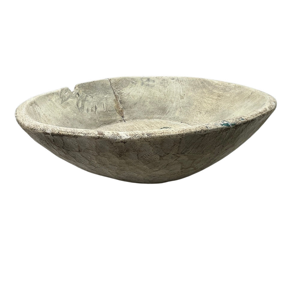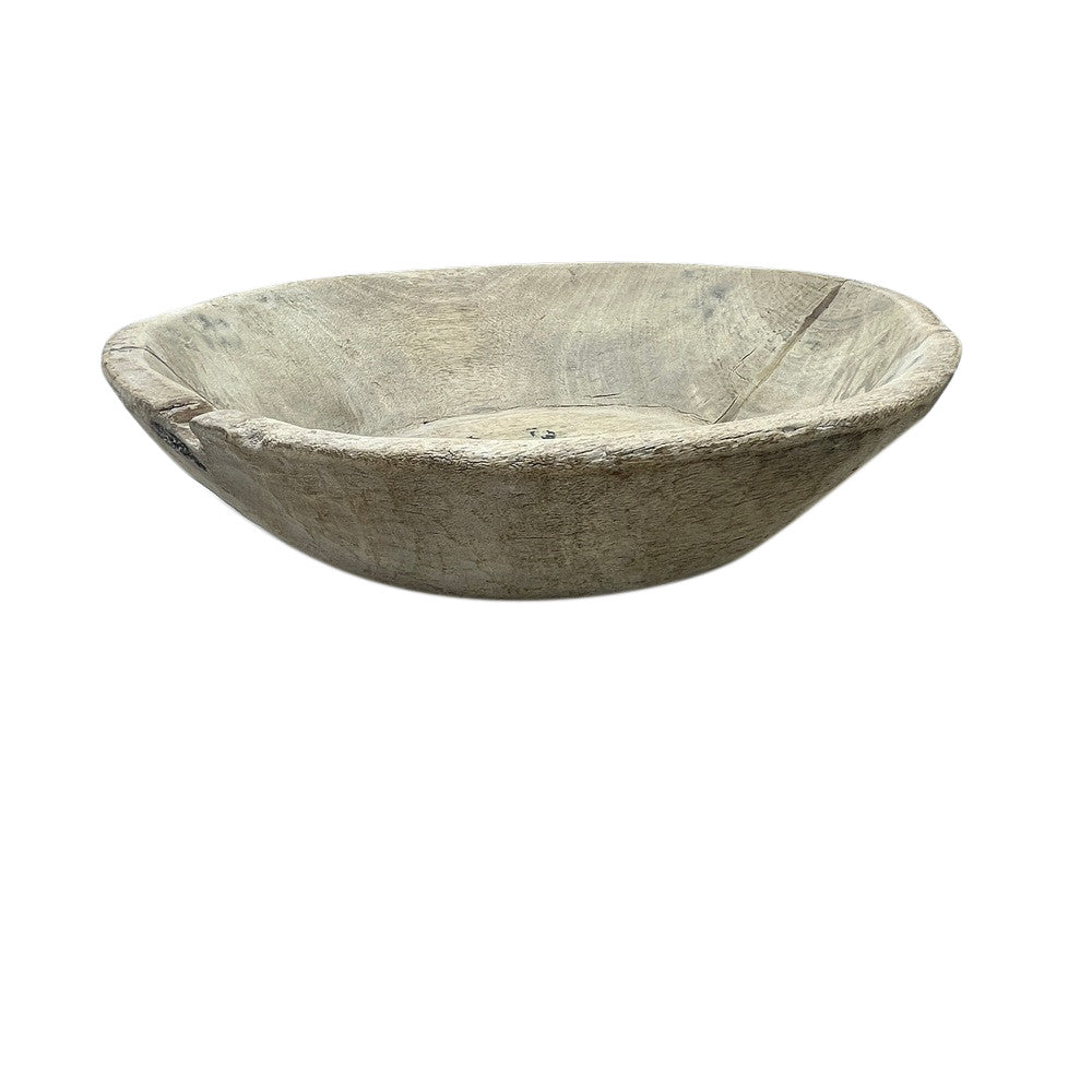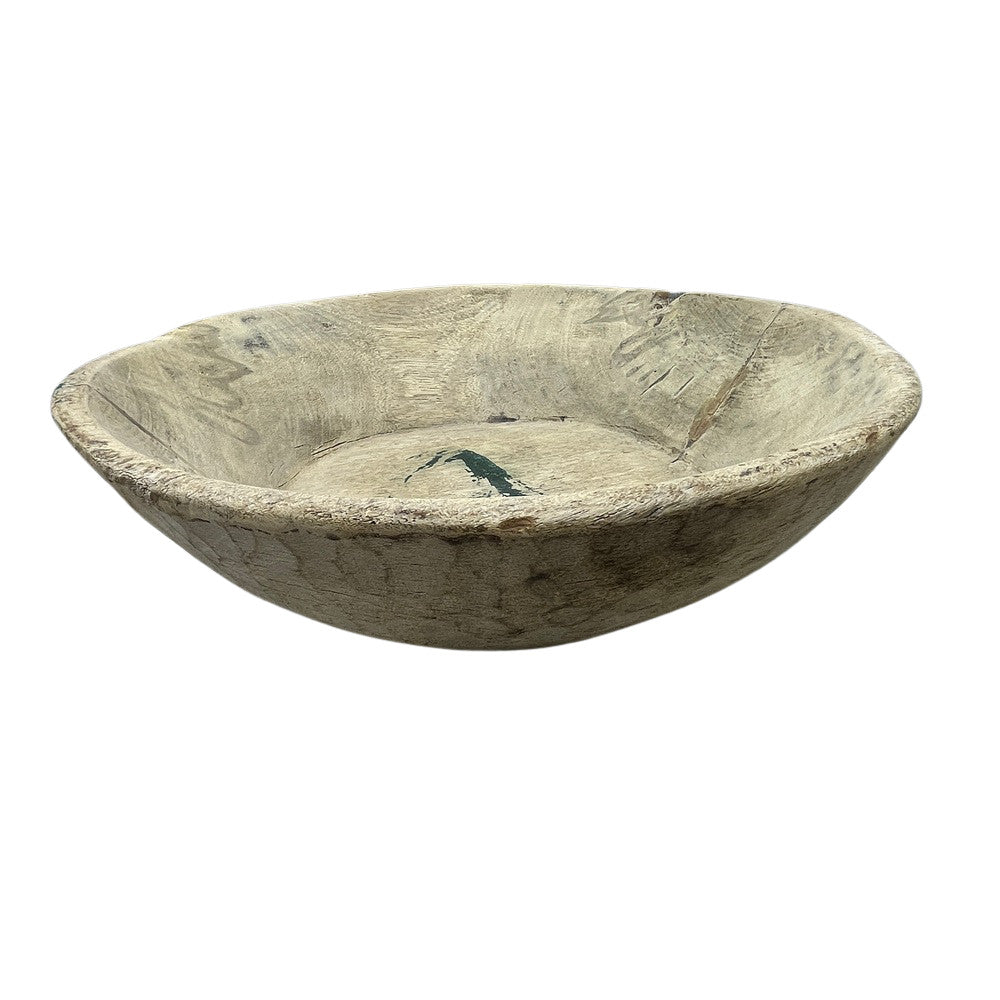 This vintage natural wood Parat bowl from India was once used to knead bread dough. It is a beautiful rustic piece and can be used as a decorative bowl to hold fruit or other items. A wonderful addition to your Farmhouse or Boho Chic environment.