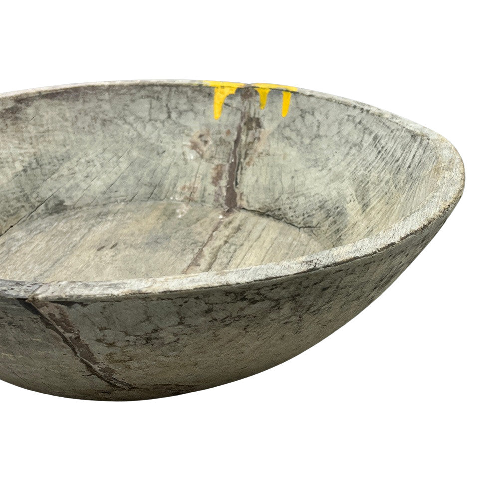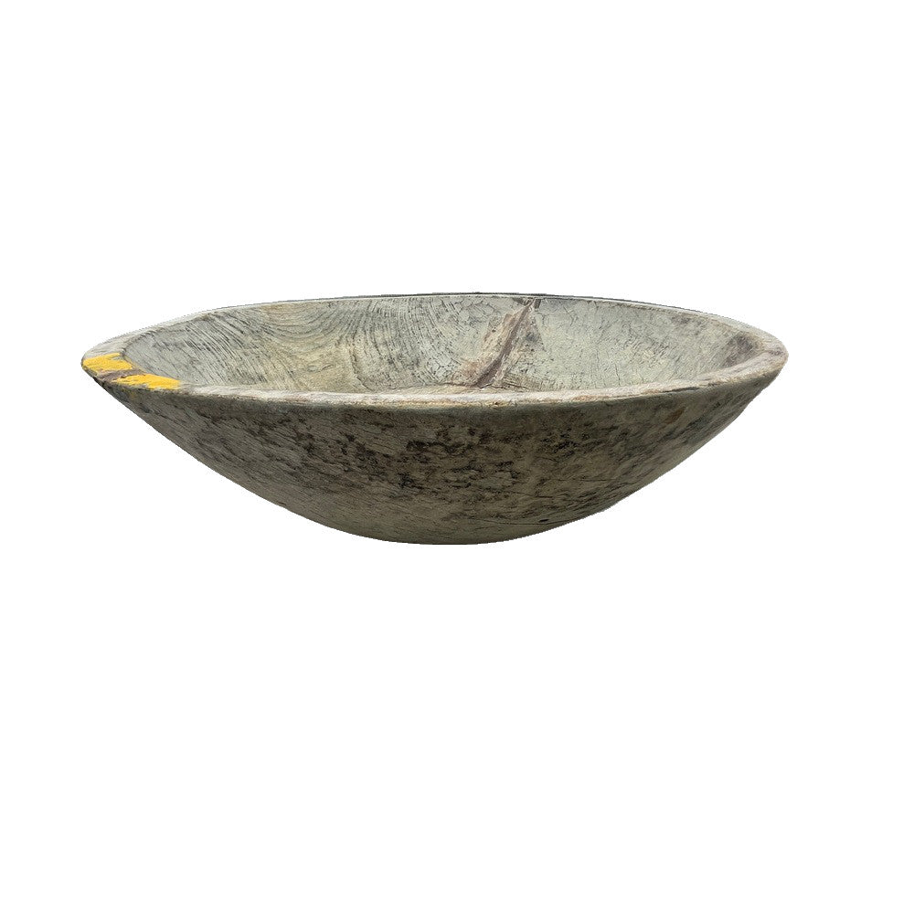 This vintage natural wood Parat bowl from India was once used to knead bread dough. It is a beautiful rustic piece and can be used as a decorative bowl to hold fruit or other items. A wonderful addition to your Farmhouse or Boho Chic environment.