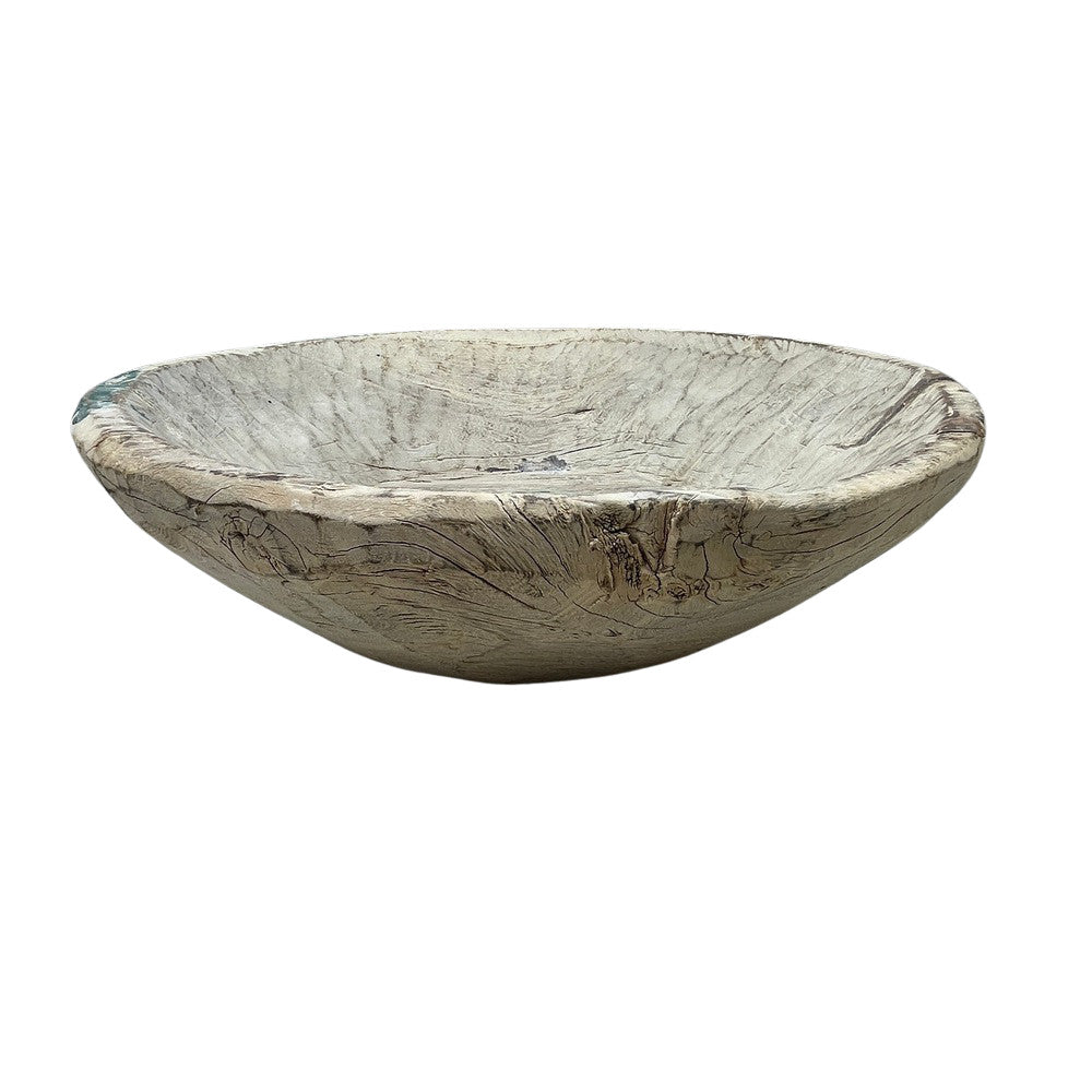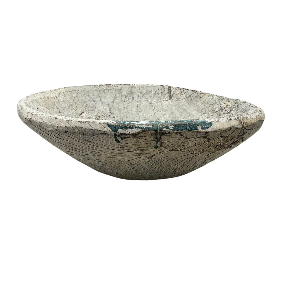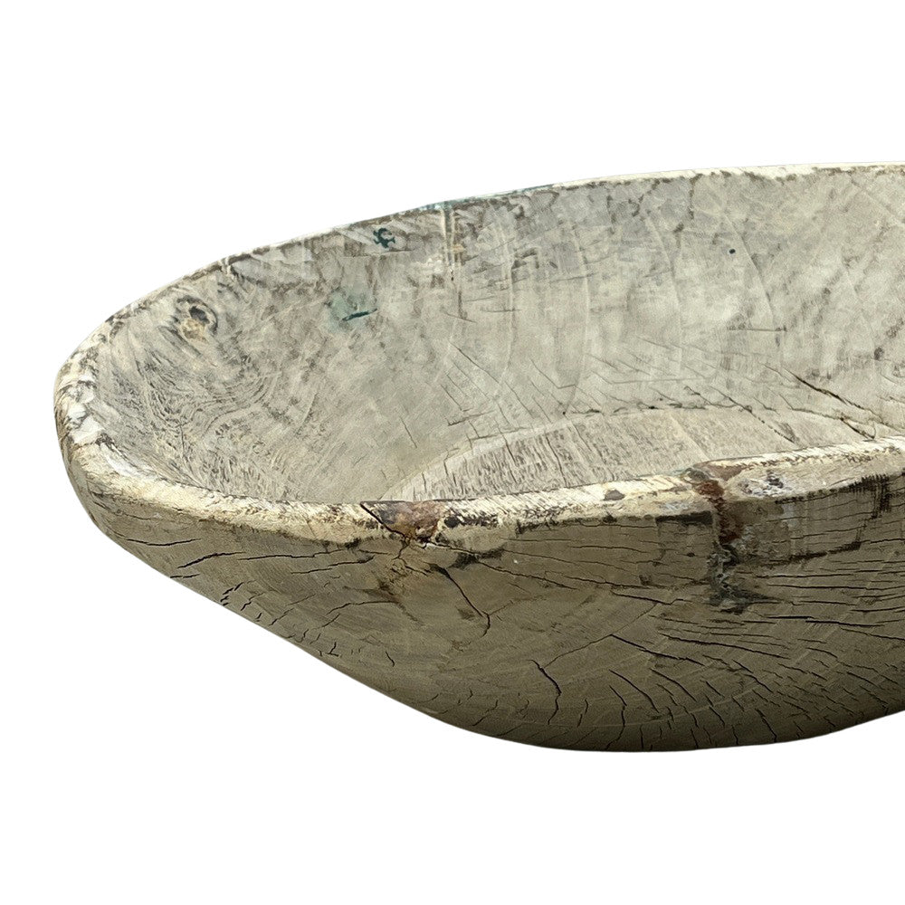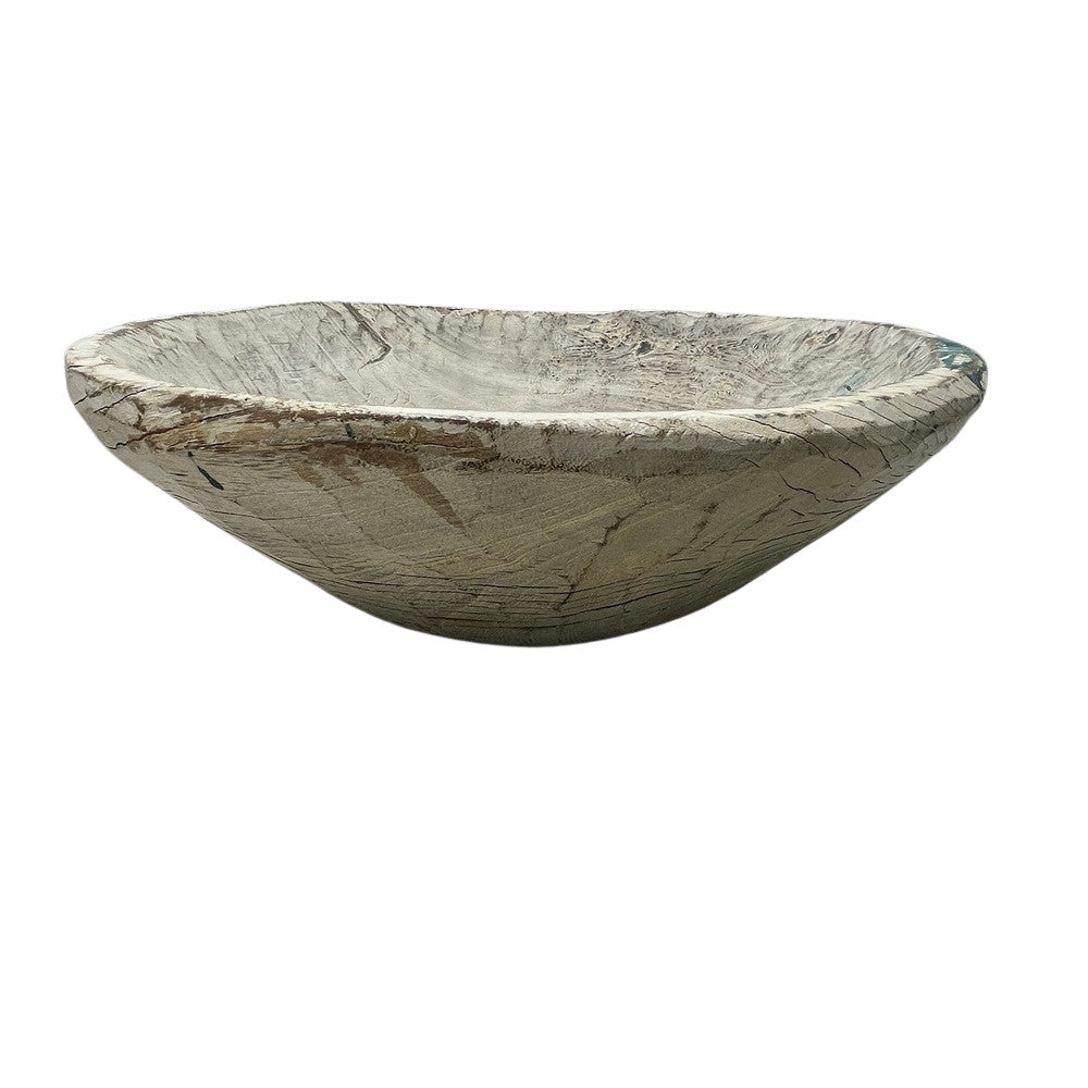 This vintage natural wood Parat bowl from India was once used to knead bread dough. It is a beautiful rustic piece and can be used as a decorative bowl to hold fruit or other items. A wonderful addition to your Farmhouse or Boho Chic environment.