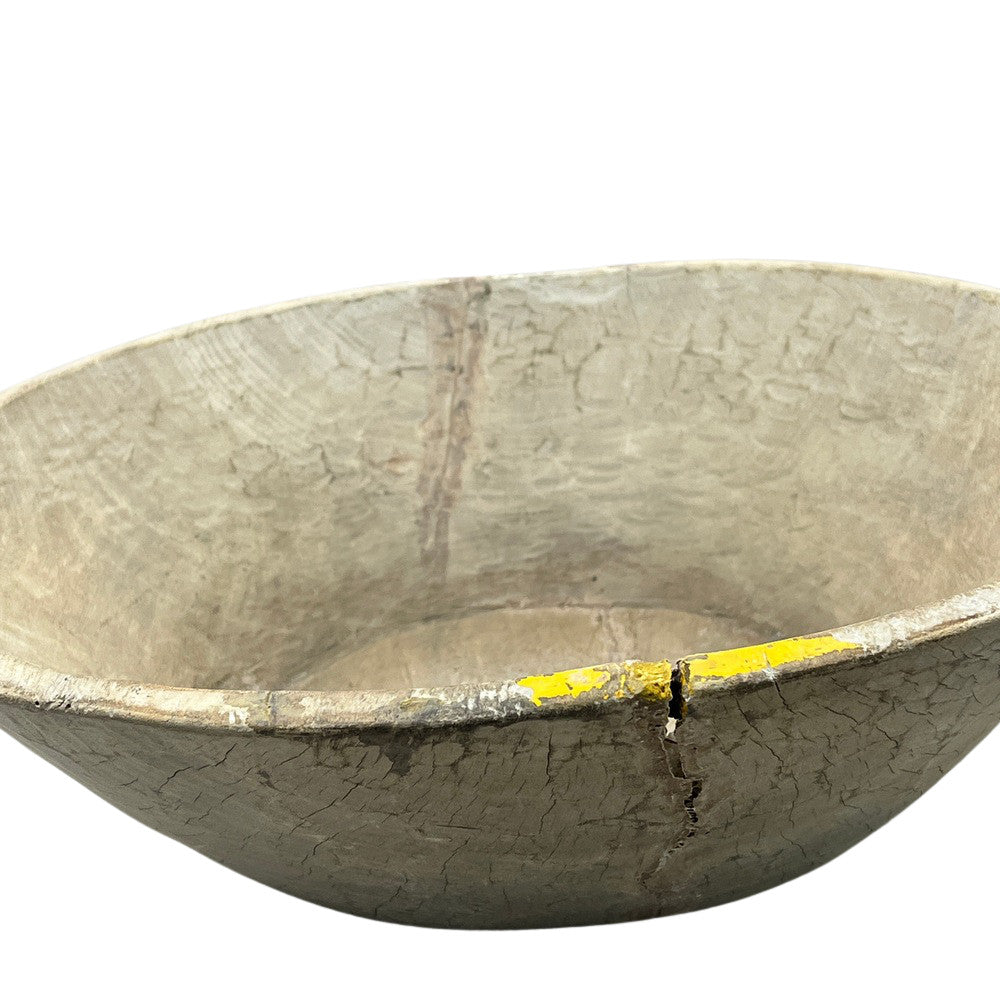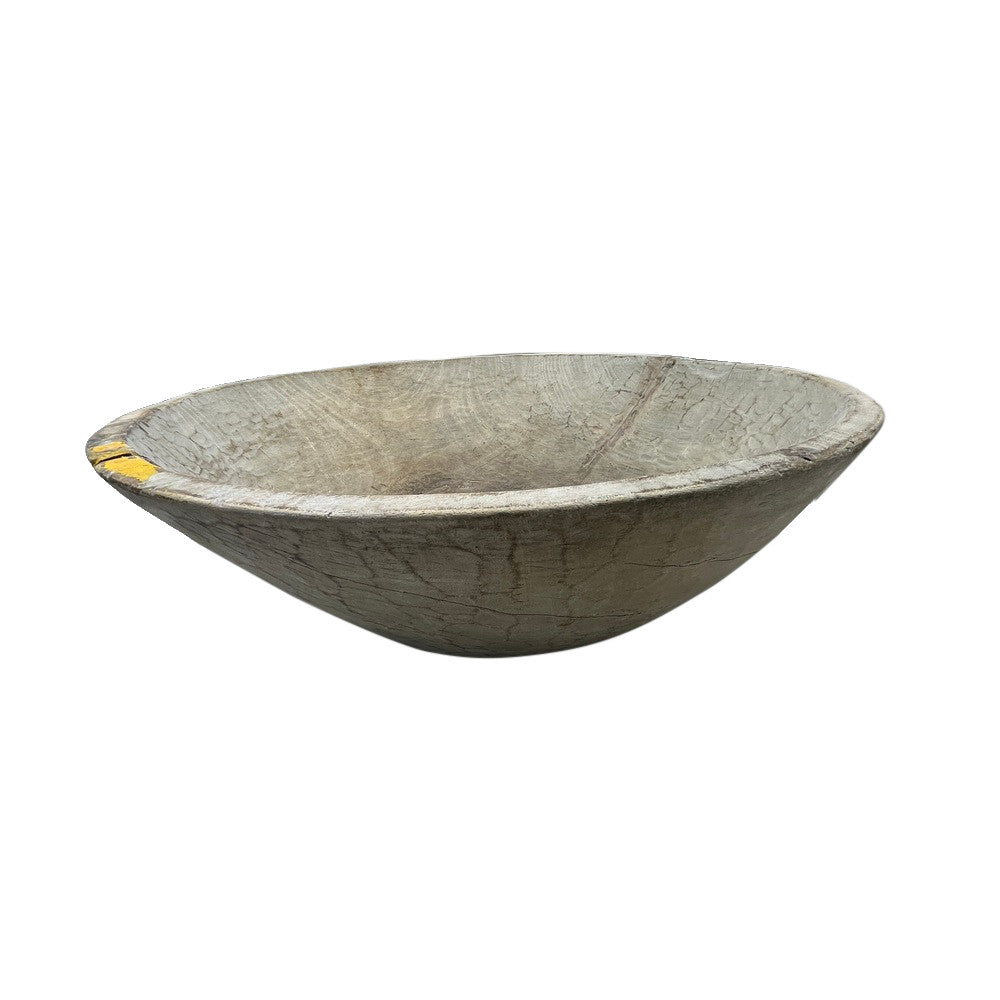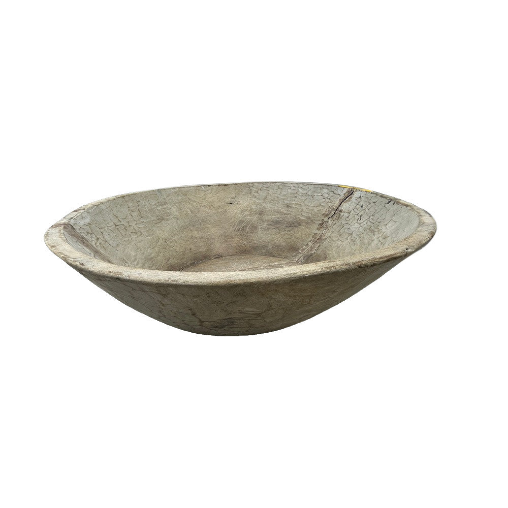 This vintage natural wood Parat bowl from India was once used to knead bread dough. It is a beautiful rustic piece and can be used as a decorative bowl to hold fruit or other items. A wonderful addition to your Farmhouse or Boho Chic environment.