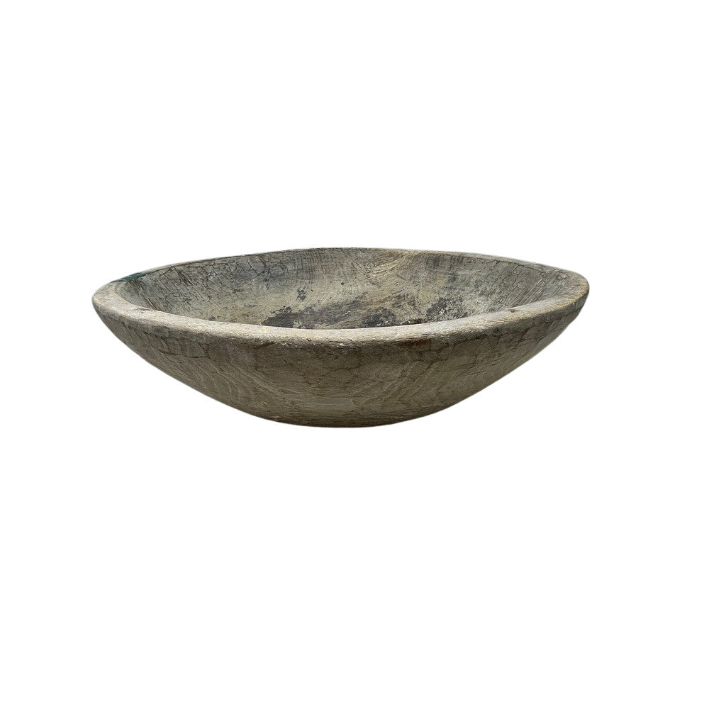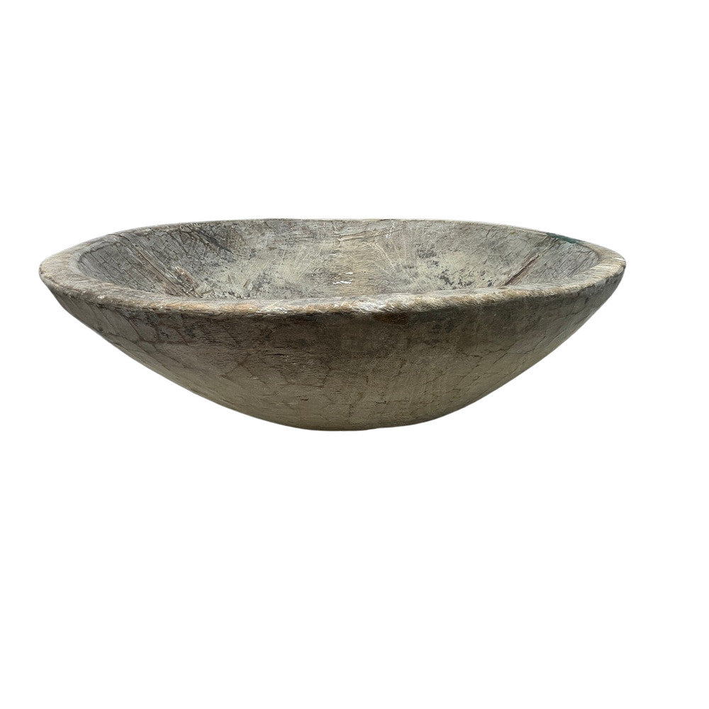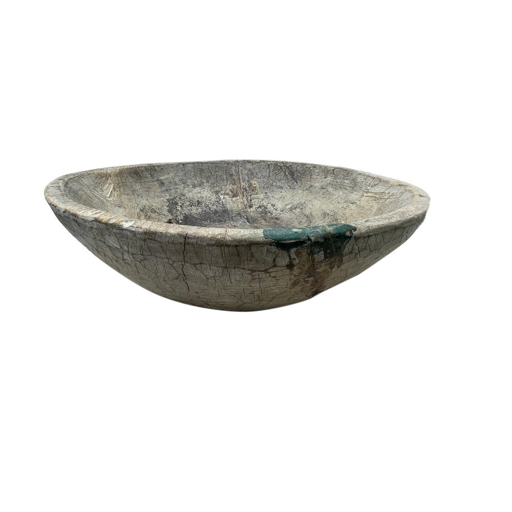 This vintage natural wood Parat bowl from India was once used to knead bread dough. It is a beautiful rustic piece and can be used as a decorative bowl to hold fruit or other items. A wonderful addition to your Farmhouse or Boho Chic environment.