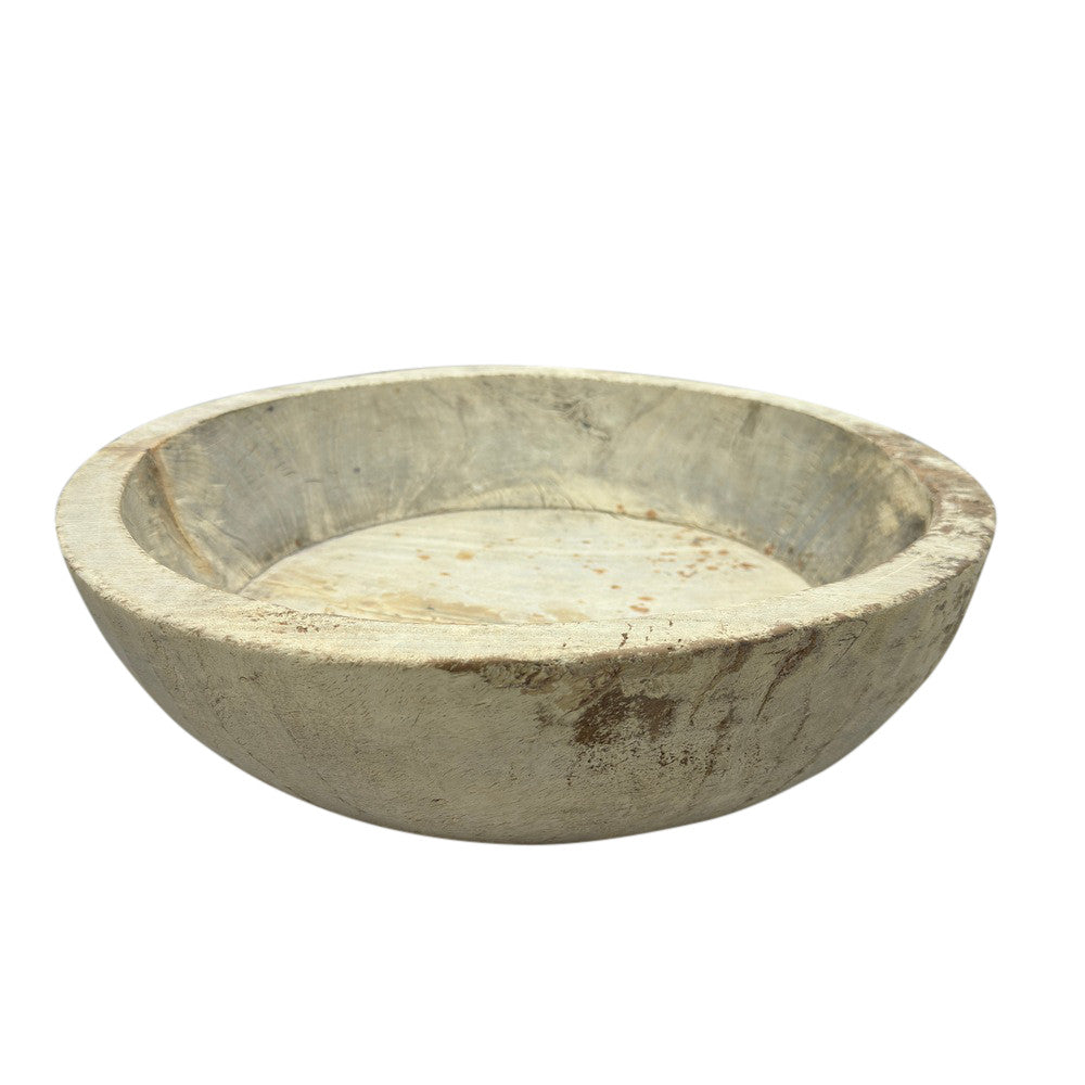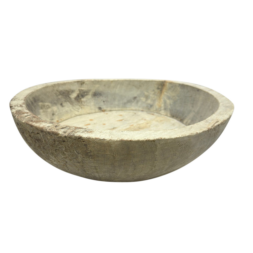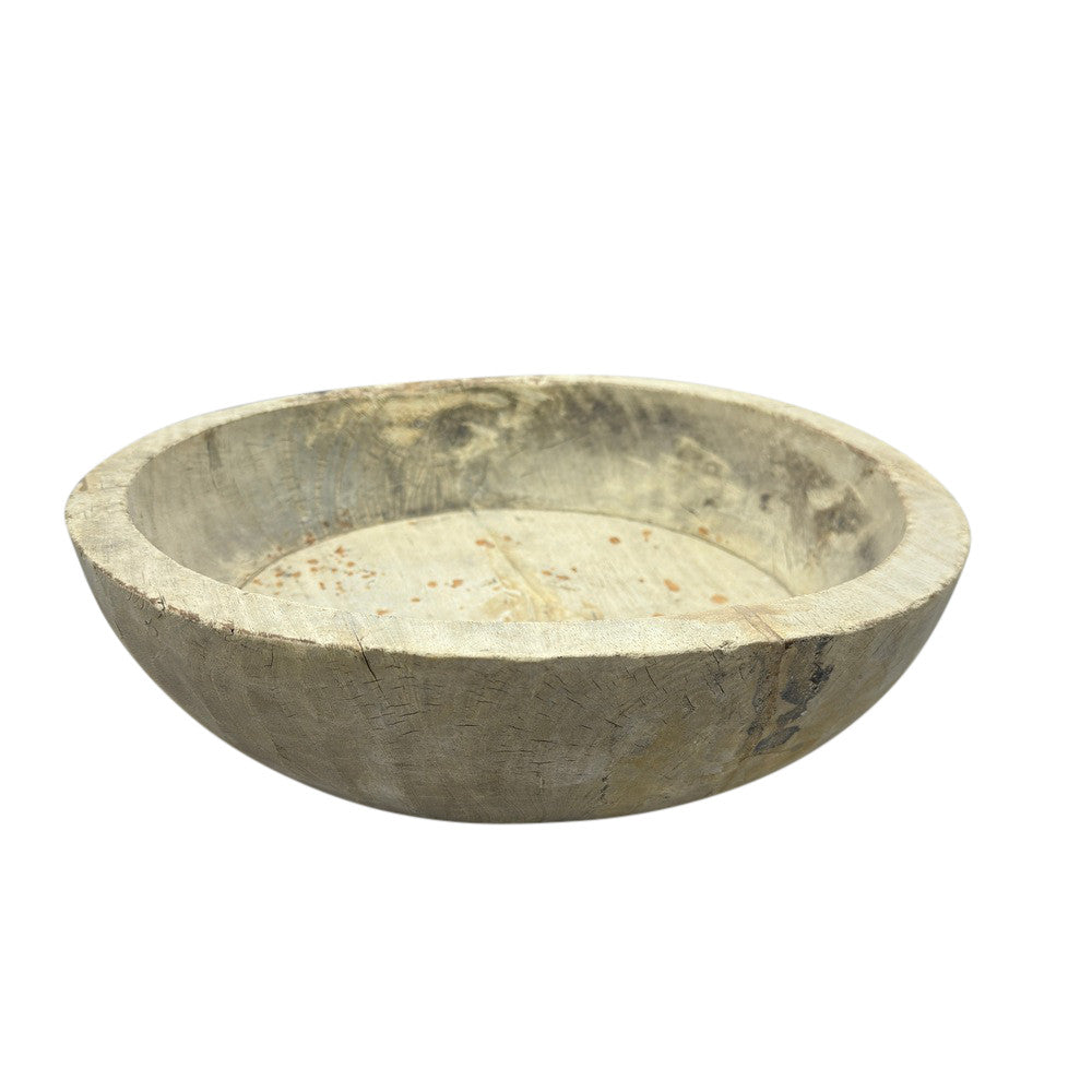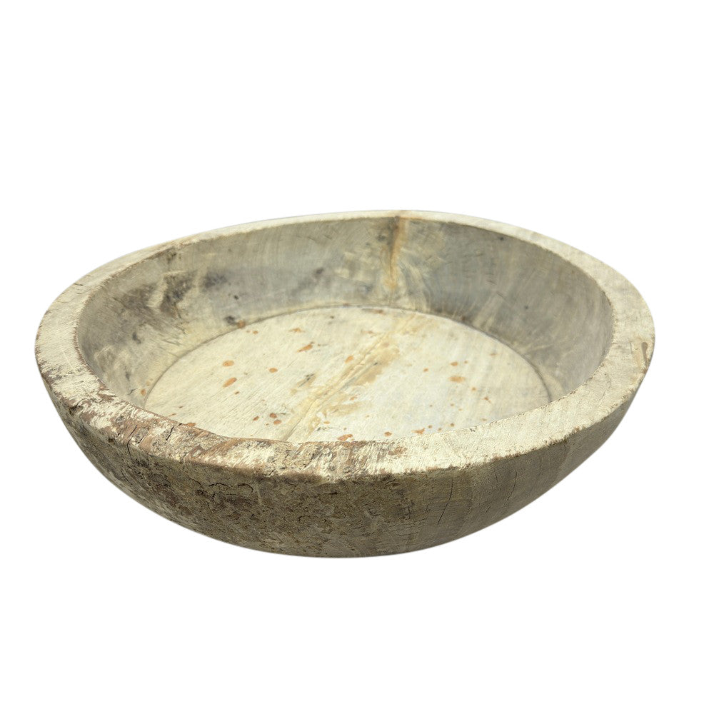 This vintage wood Parat bowl from India was once used to knead bread dough. It is a beautiful rustic piece and can be used as a decorative bowl to hold fruit or other items. A wonderful addition to your Farmhouse or Boho Chic environment.