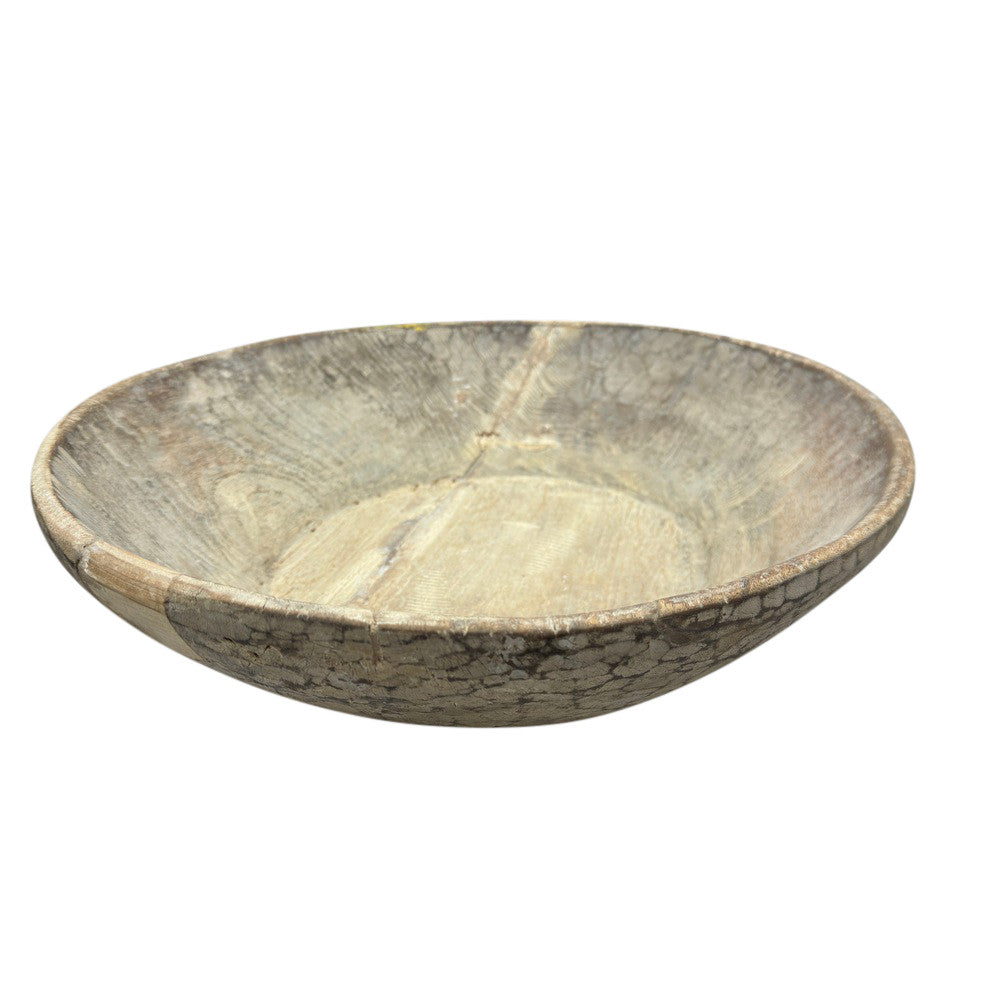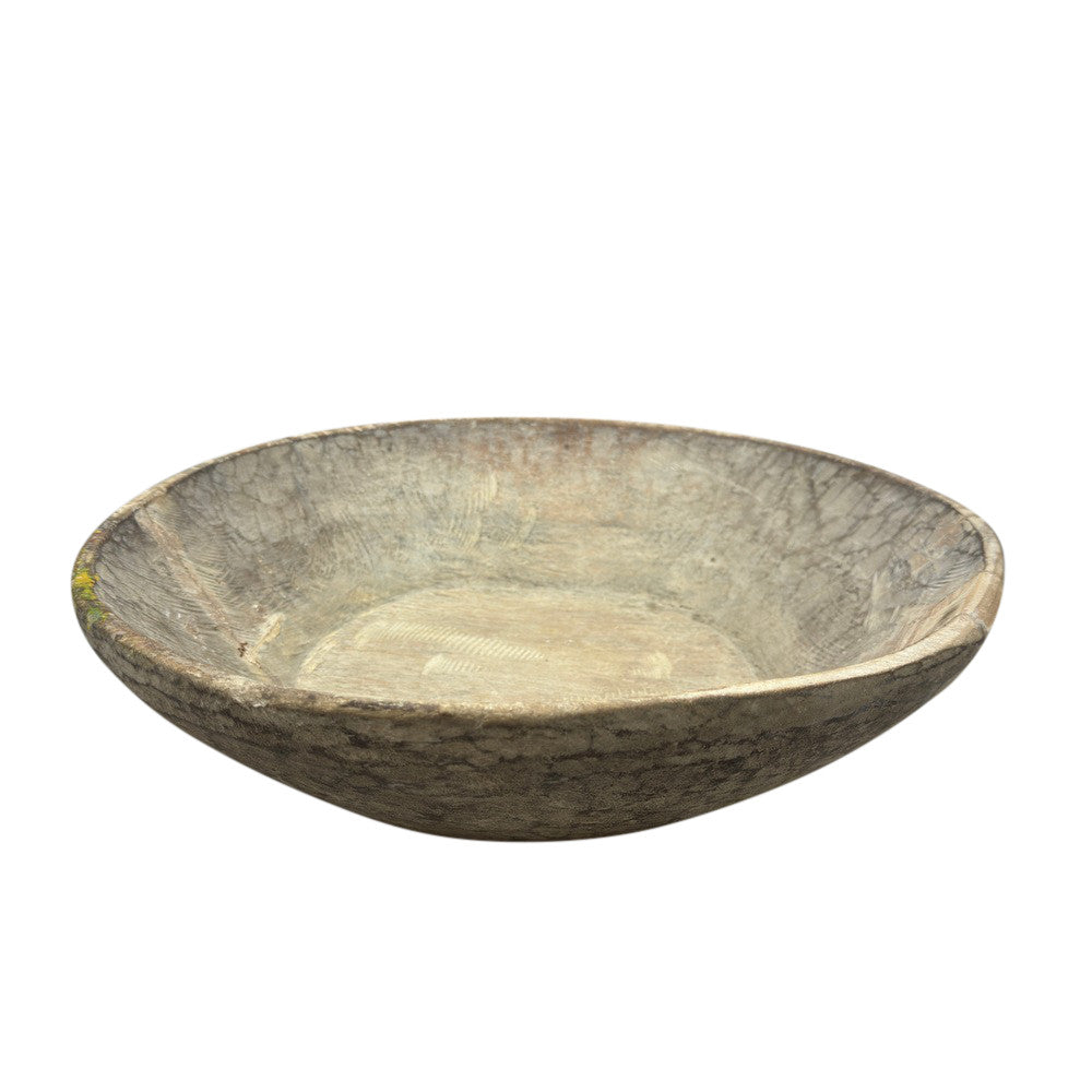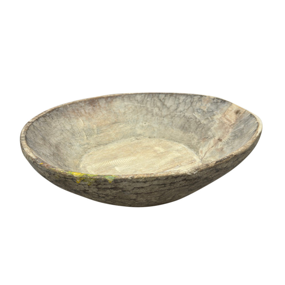 This vintage wood Parat bowl from India was once used to knead bread dough. It is a beautiful rustic piece and can be used as a decorative bowl to hold fruit or other items. A wonderful addition to your Farmhouse or Boho Chic environment.