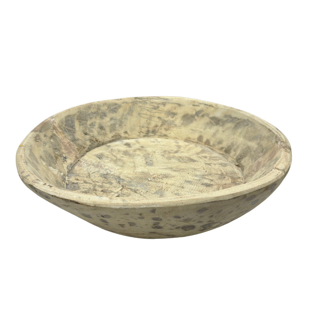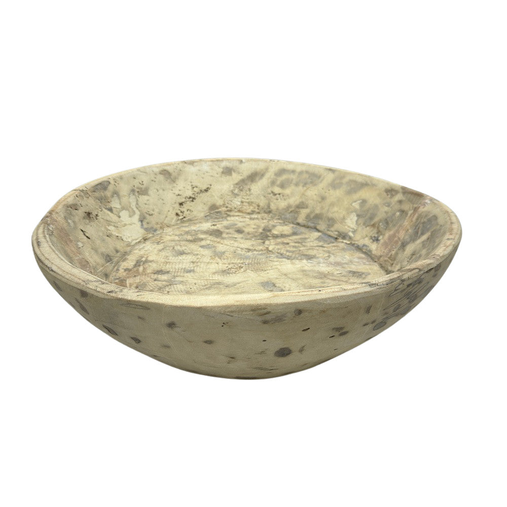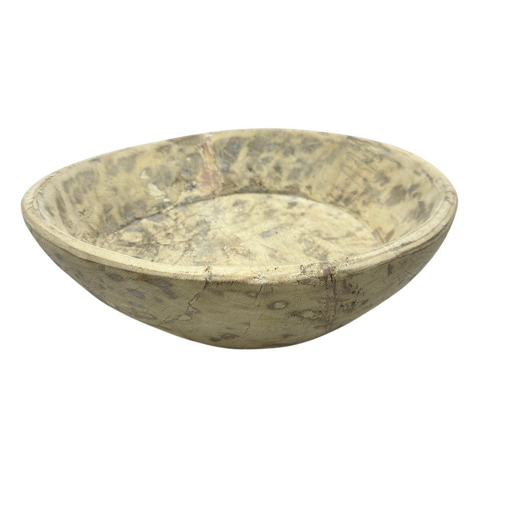This vintage wood Parat bowl from India was once used to knead bread dough. It is a beautiful rustic piece and can be used as a decorative bowl to hold fruit or other items. A wonderful addition to your Farmhouse or Boho Chic environment.