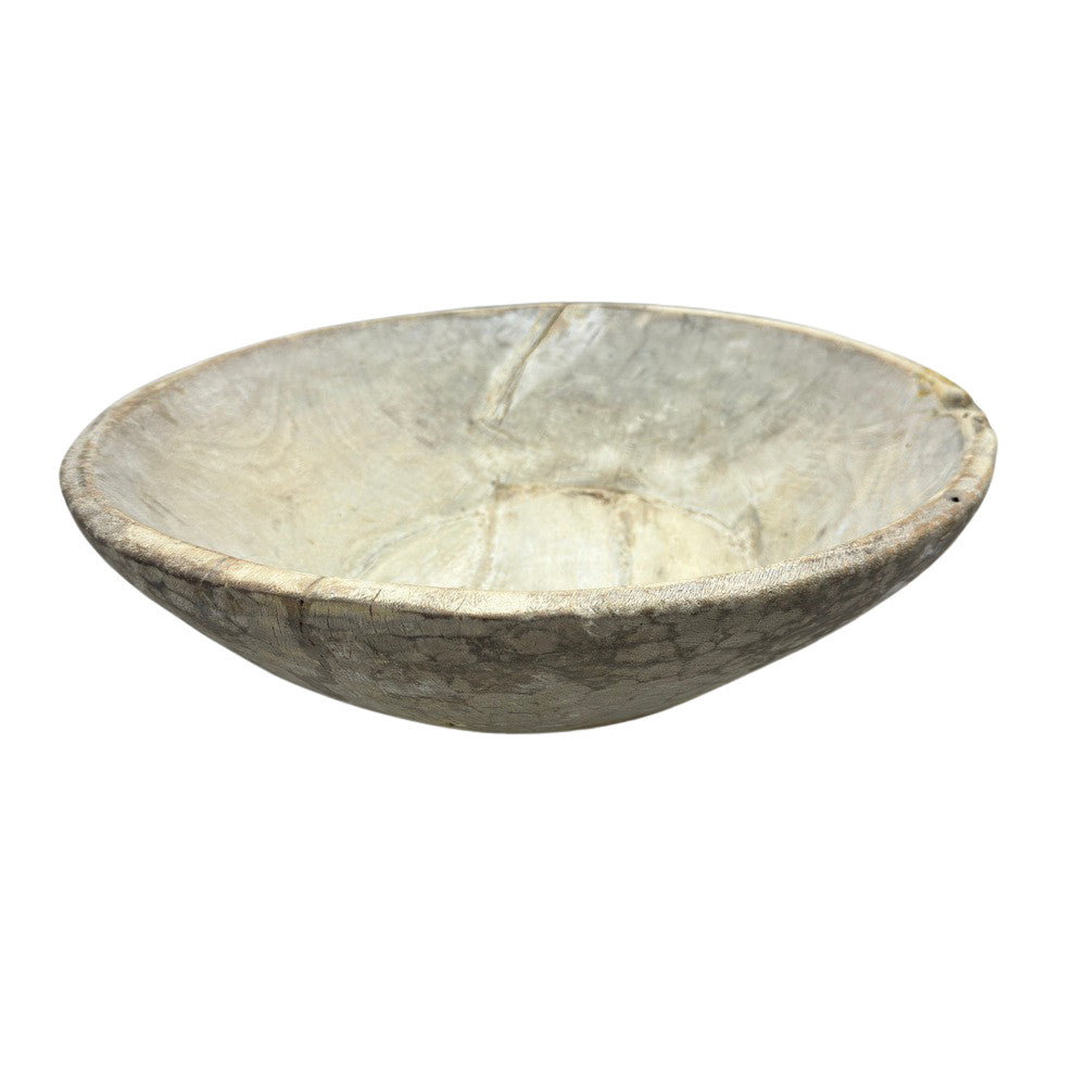 This vintage wood Parat bowl from India was once used to knead bread dough. It is a beautiful rustic piece and can be used as a decorative bowl to hold fruit or other items. A wonderful addition to your Farmhouse or Boho Chic environment.