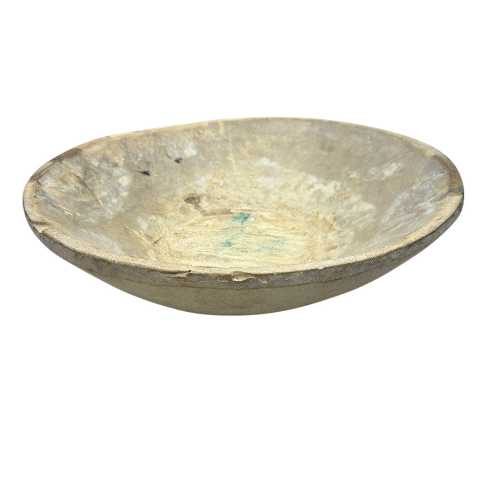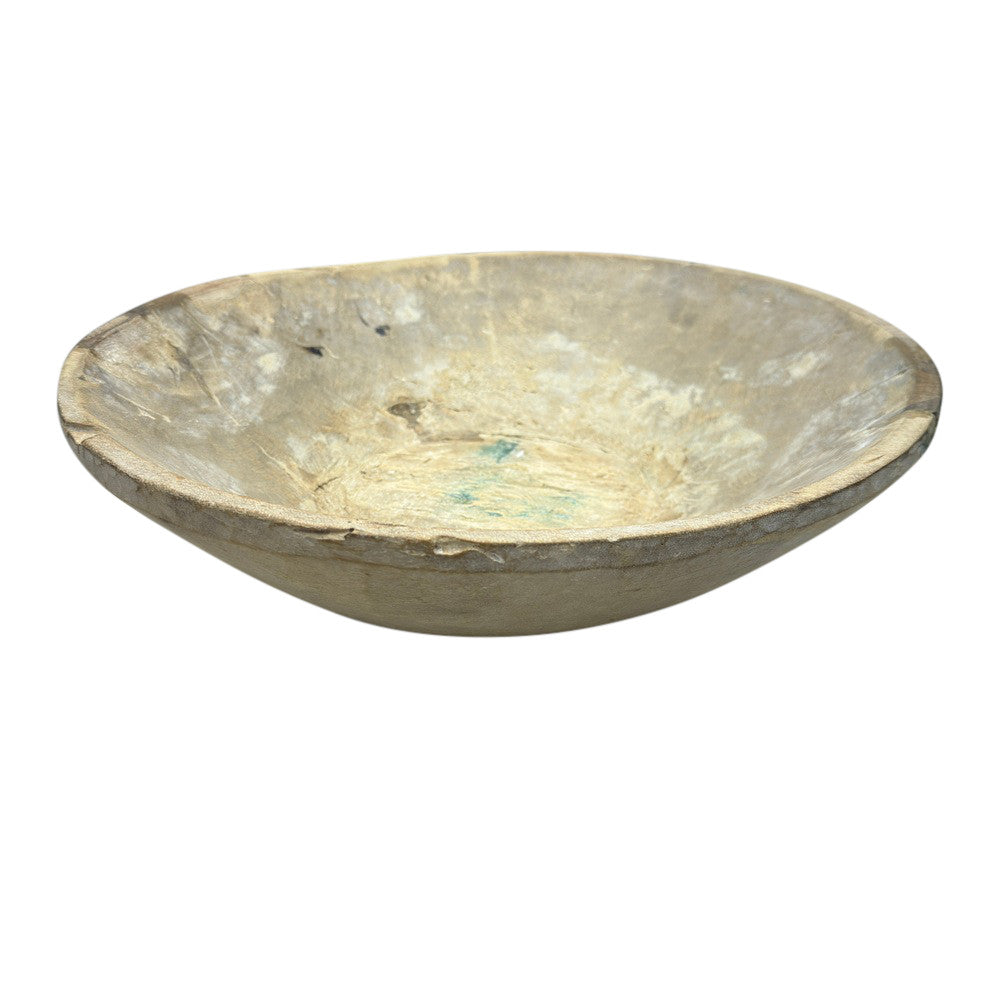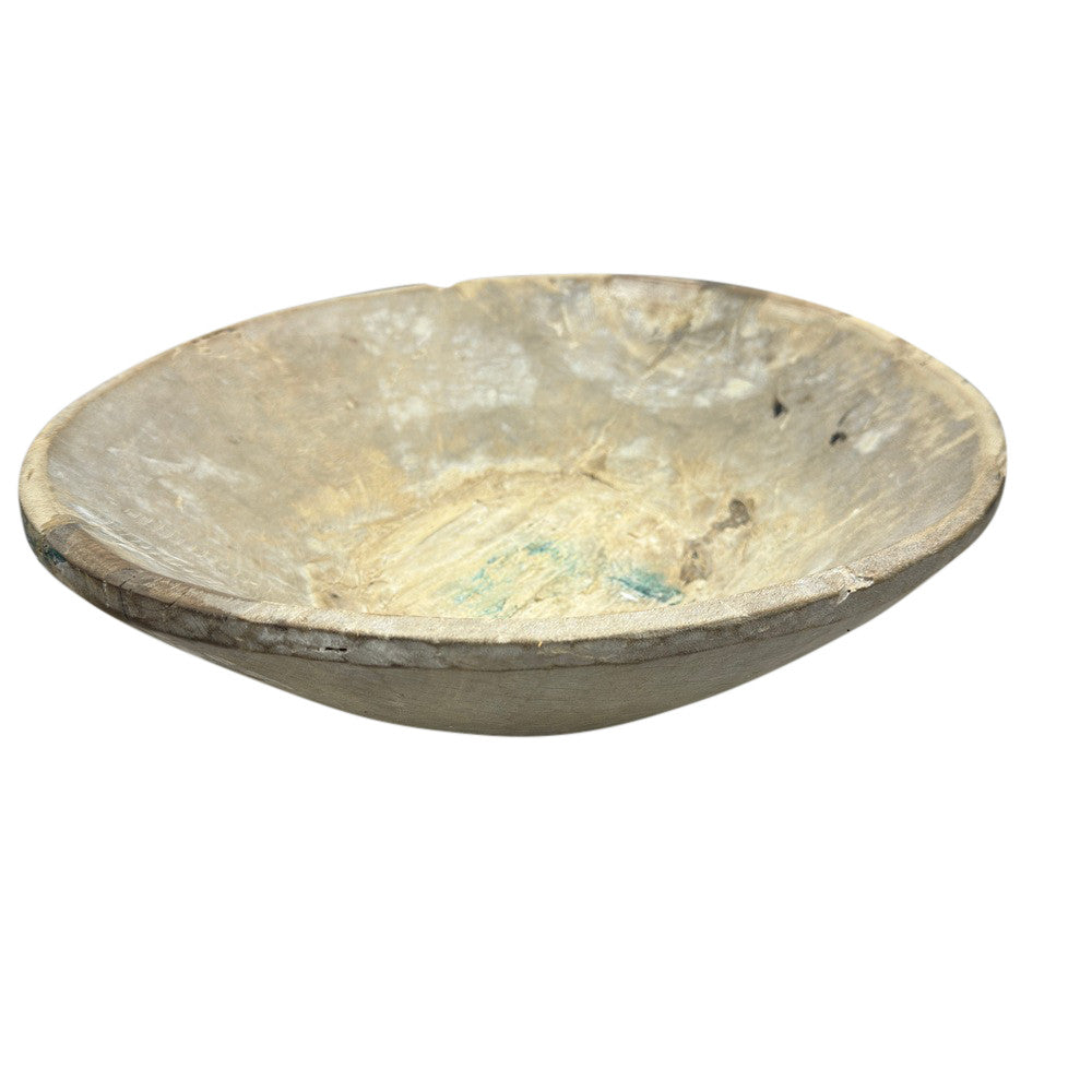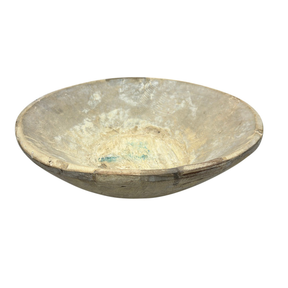 This vintage wood Parat bowl from India was once used to knead bread dough. It is a beautiful rustic piece and can be used as a decorative bowl to hold fruit or other items. A wonderful addition to your Farmhouse or Boho Chic environment.