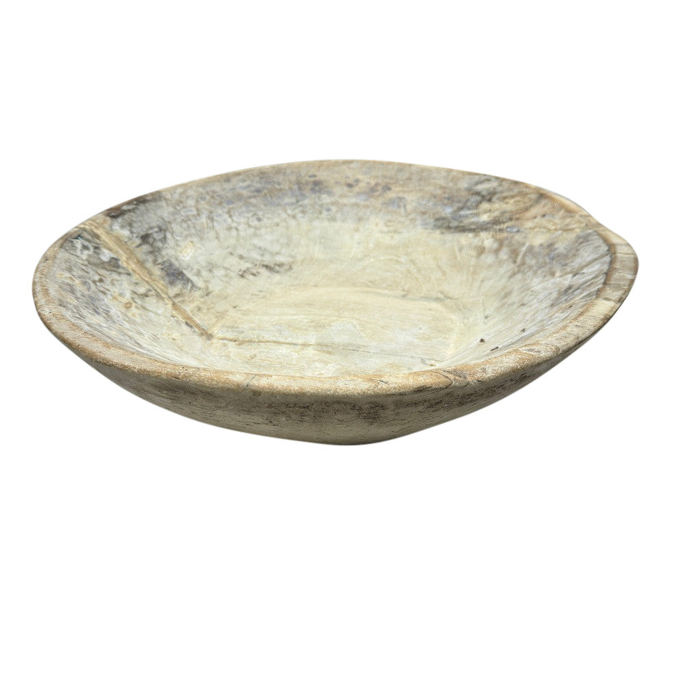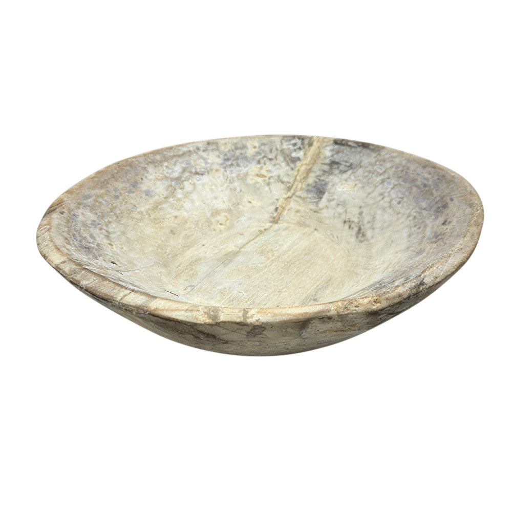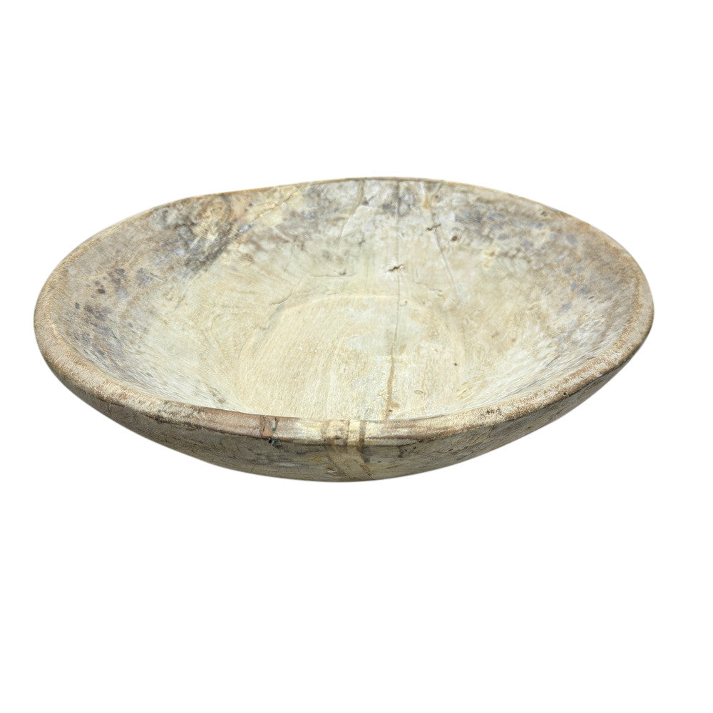 This vintage wood Parat bowl from India was once used to knead bread dough. It is a beautiful rustic piece and can be used as a decorative bowl to hold fruit or other items. A wonderful addition to your Farmhouse or Boho Chic environment.
