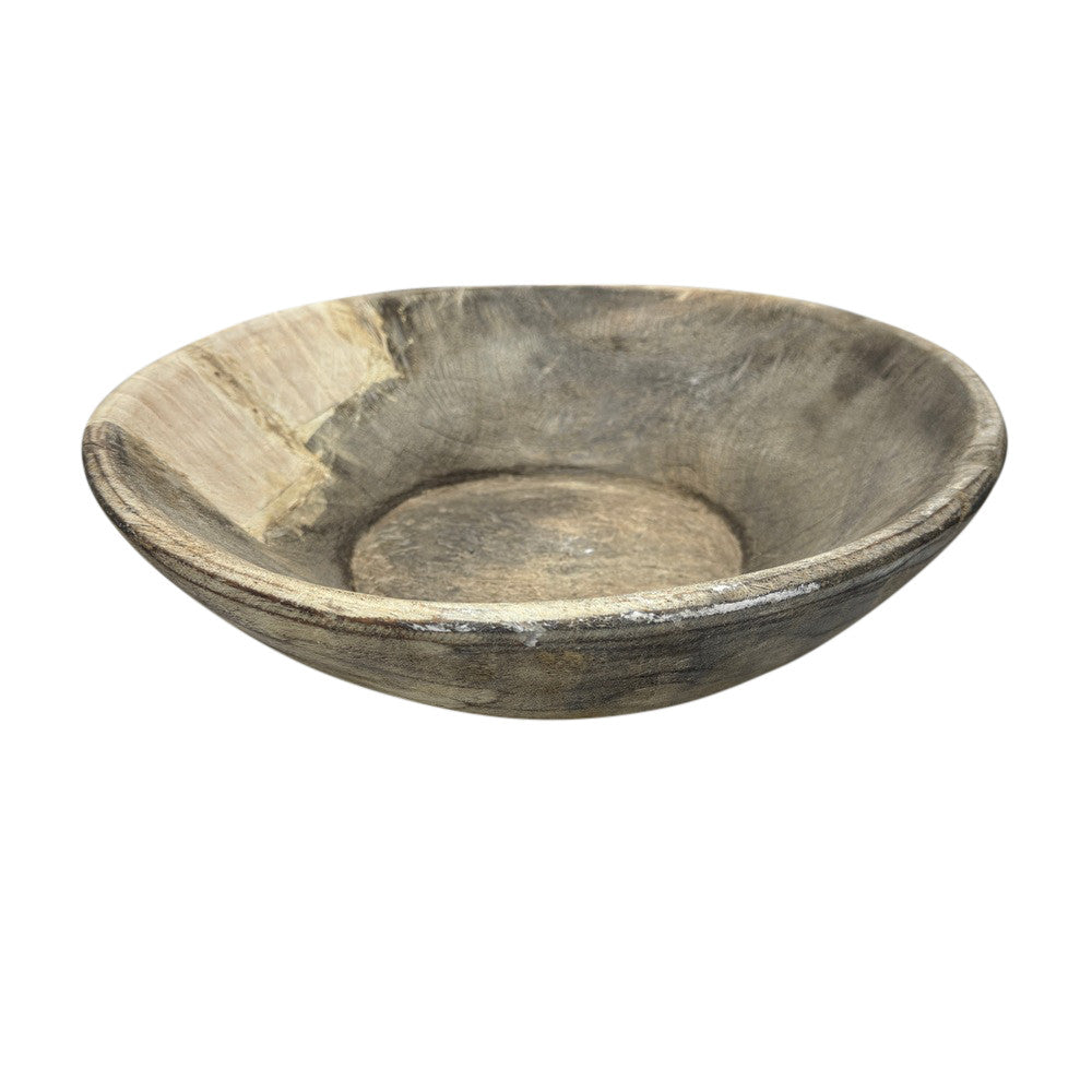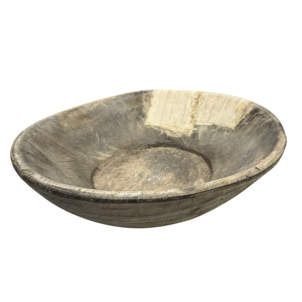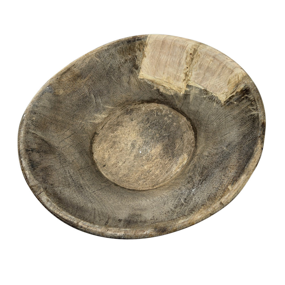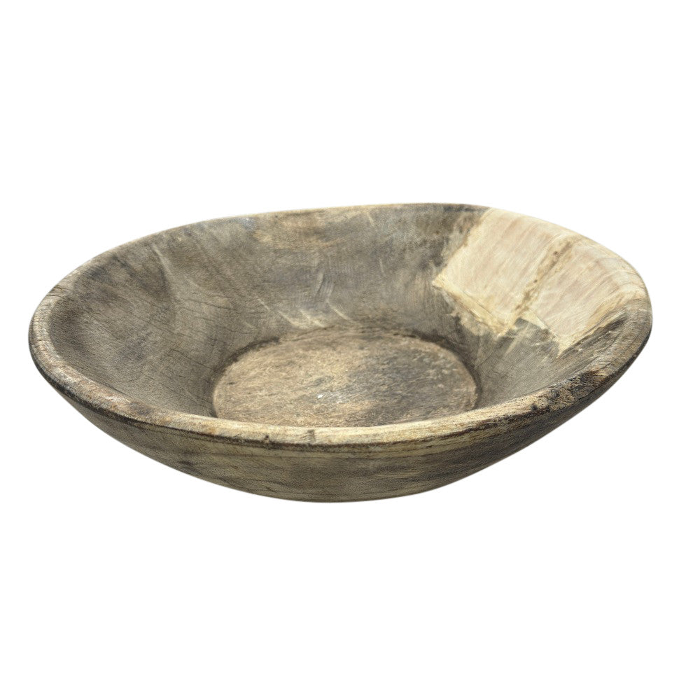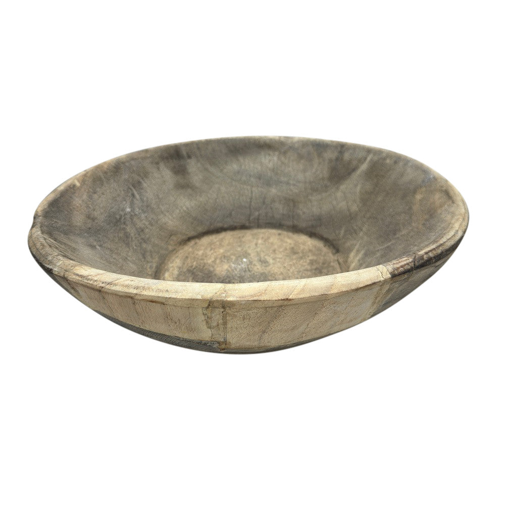 This vintage wood Parat bowl from India was once used to knead bread dough. It is a beautiful rustic piece and can be used as a decorative bowl to hold fruit or other items. A wonderful addition to your Farmhouse or Boho Chic environment.