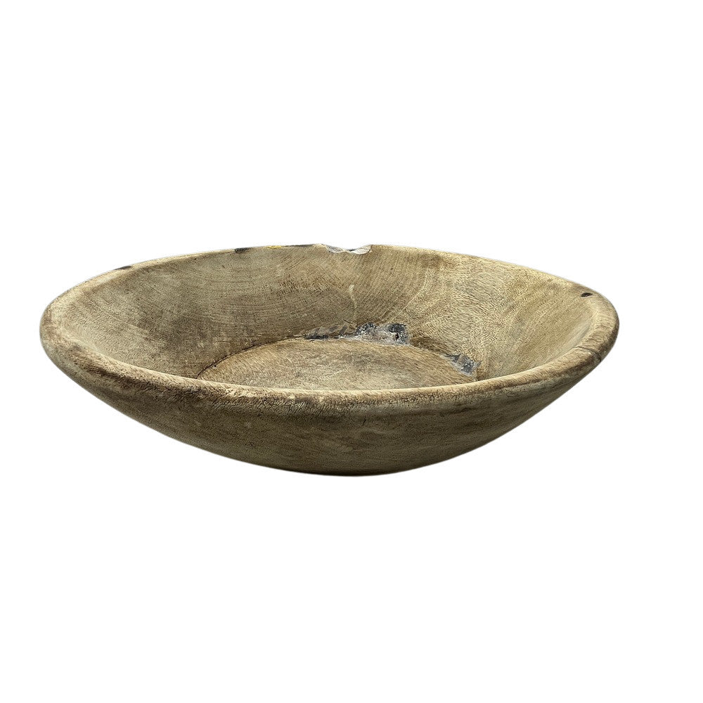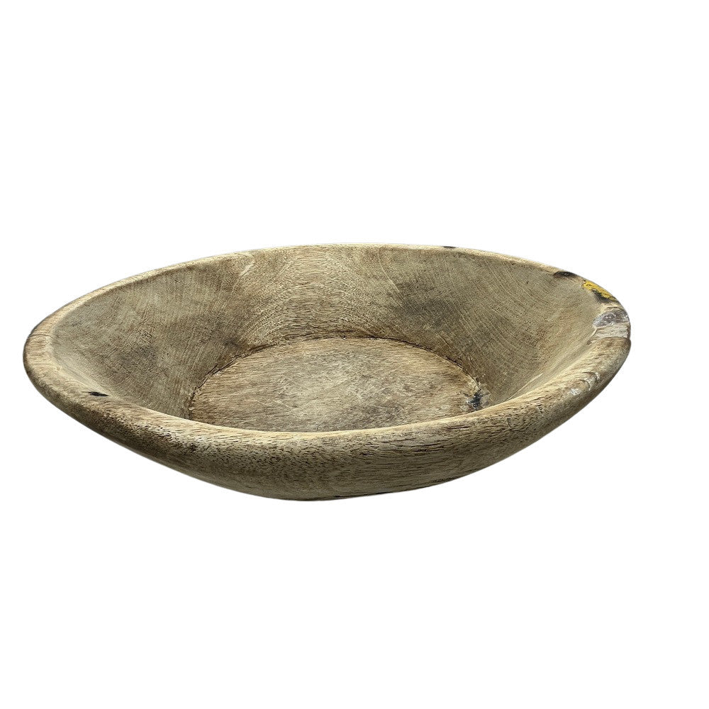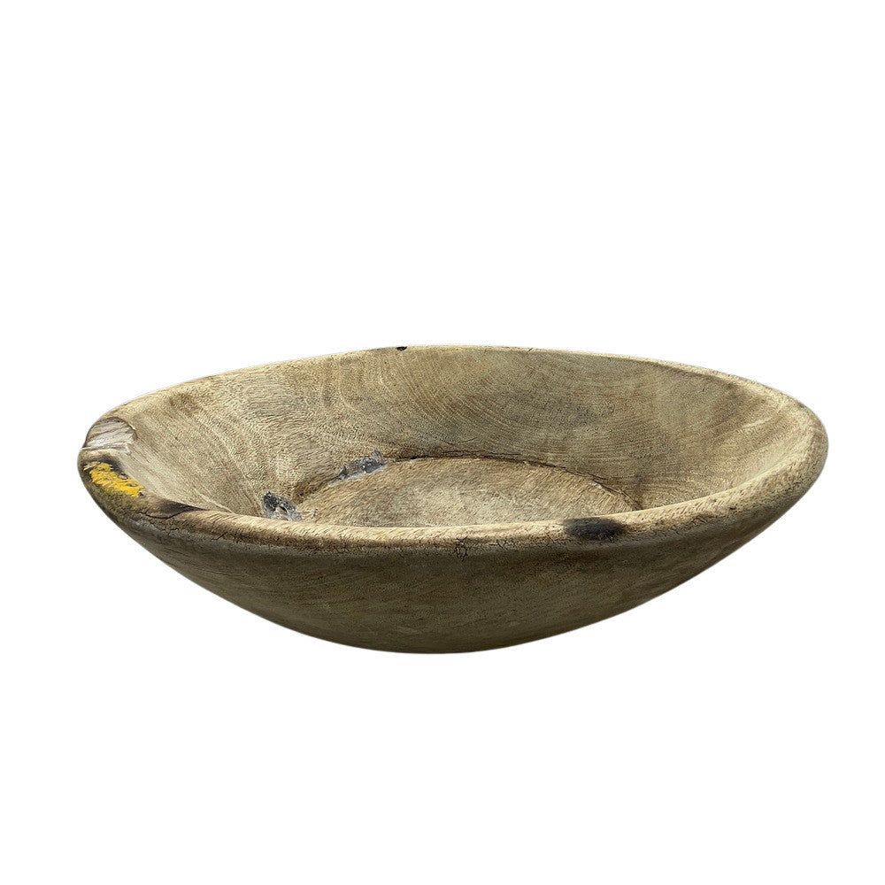 This vintage wood Parat bowl from India was once used to knead bread dough. It is a beautiful rustic piece and can be used as a decorative bowl to hold fruit or other items. A wonderful addition to your Farmhouse or Boho Chic environment.