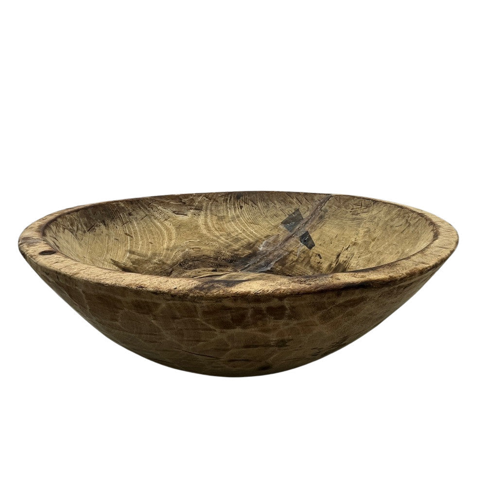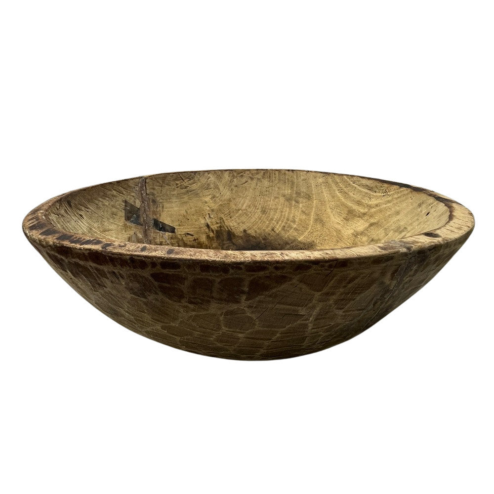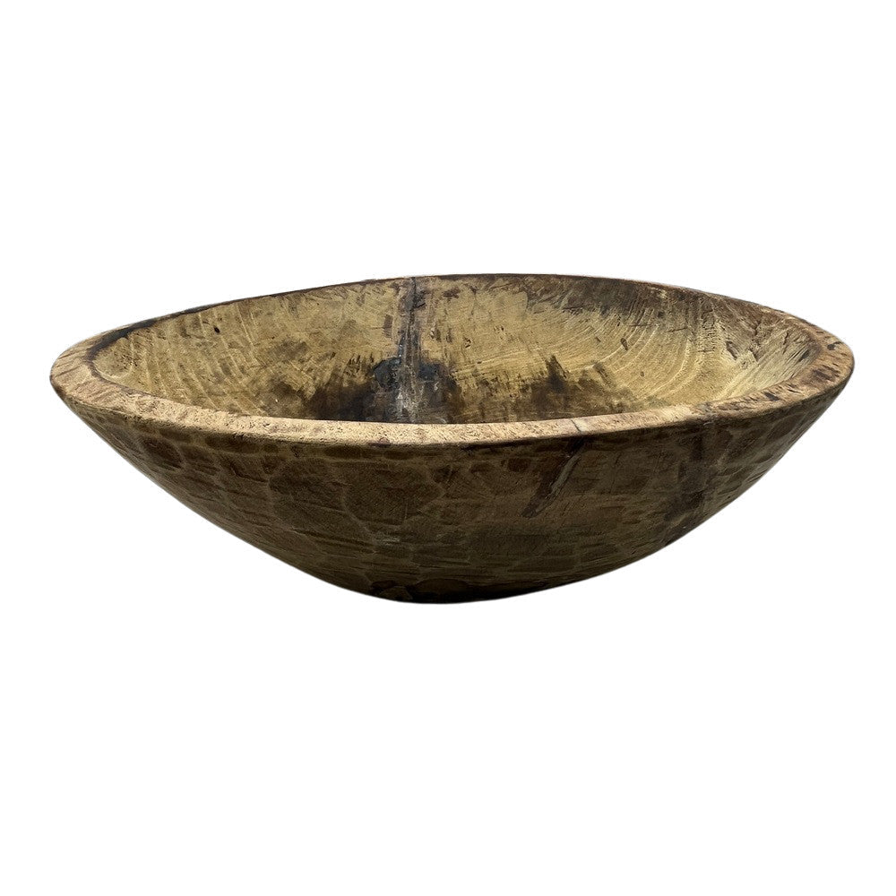 This vintage wood Parat bowl from India was once used to knead bread dough. It is a beautiful rustic piece and can be used as a decorative bowl to hold fruit or other items. A wonderful addition to your Farmhouse or Boho Chic environment.