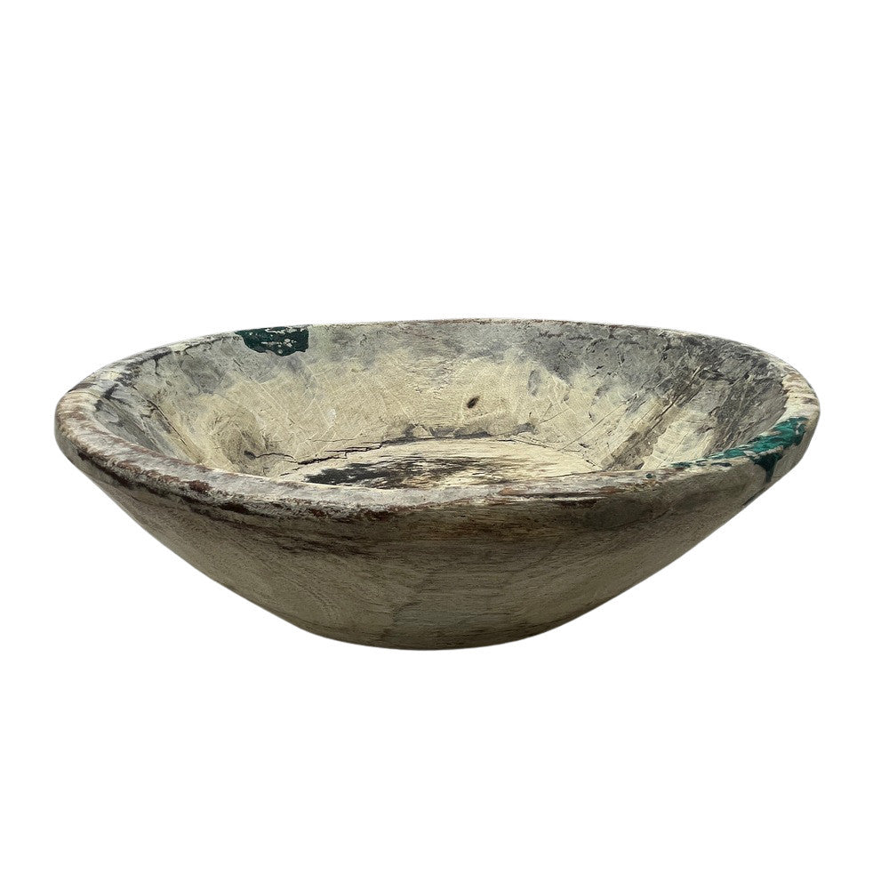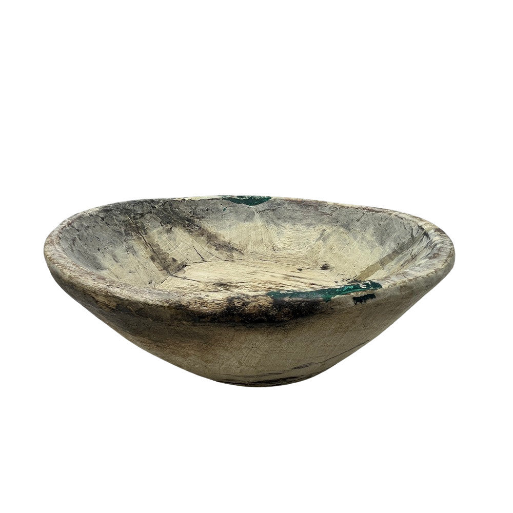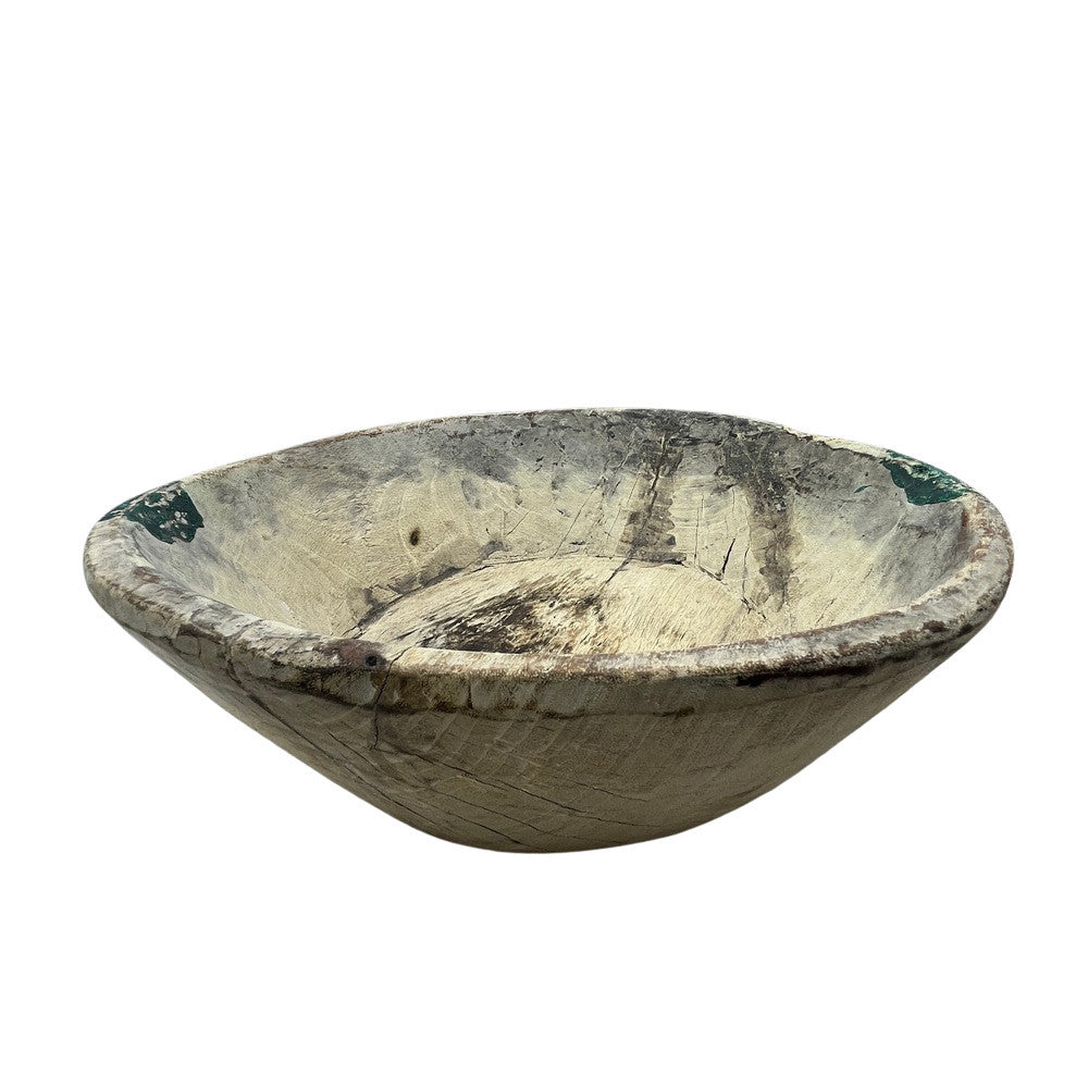 This vintage wood Parat bowl from India was once used to knead bread dough. It is a beautiful rustic piece and can be used as a decorative bowl to hold fruit or other items. A wonderful addition to your Farmhouse or Boho Chic environment.