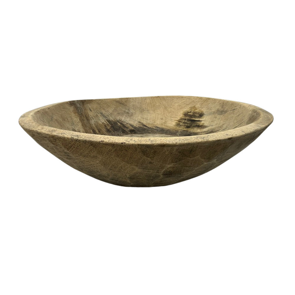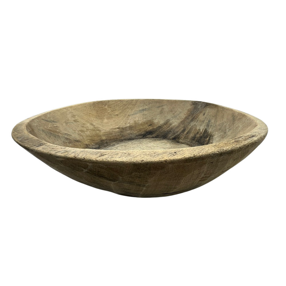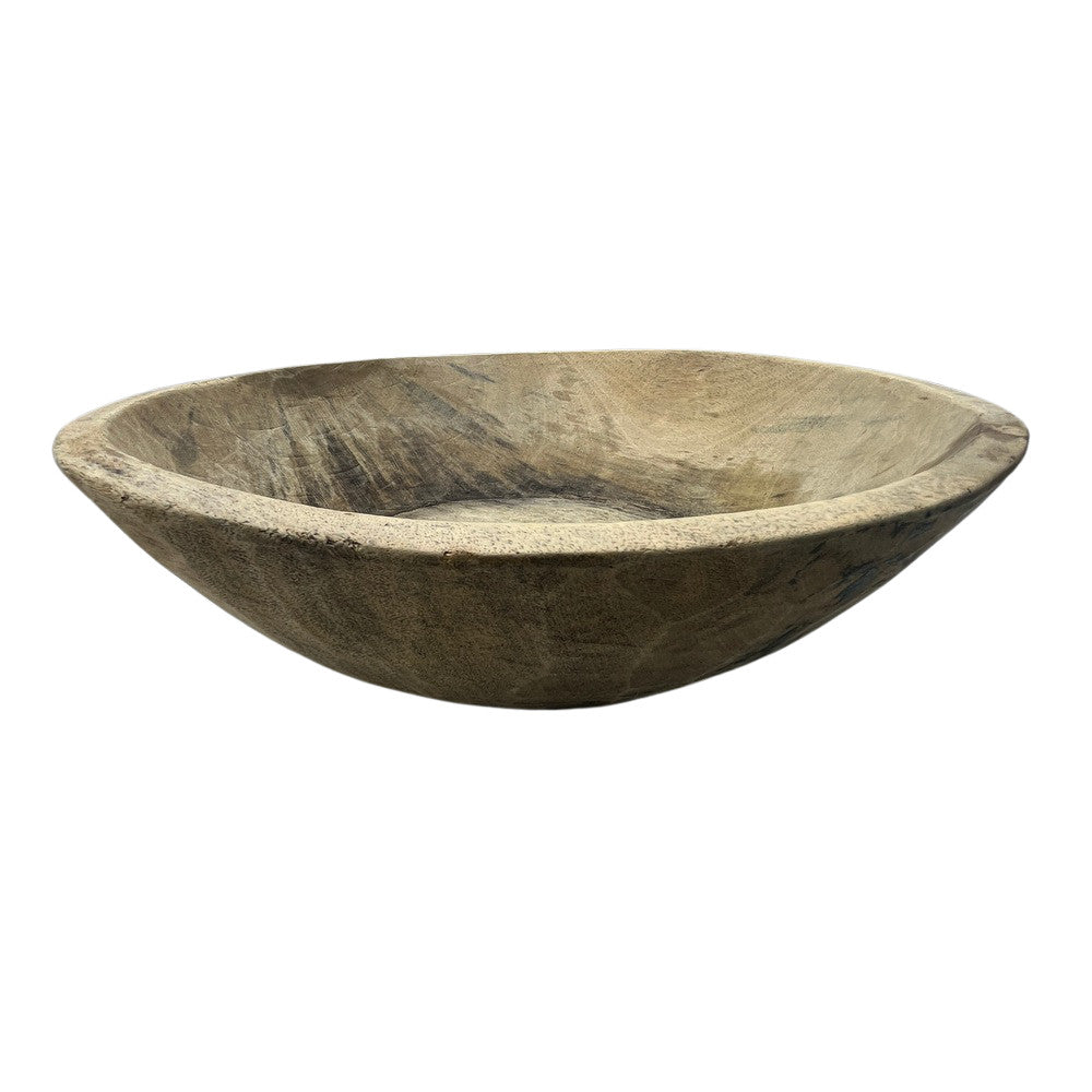 This vintage wood Parat bowl from India was once used to knead bread dough. It is a beautiful rustic piece and can be used as a decorative bowl to hold fruit or other items. A wonderful addition to your Farmhouse or Boho Chic environment.