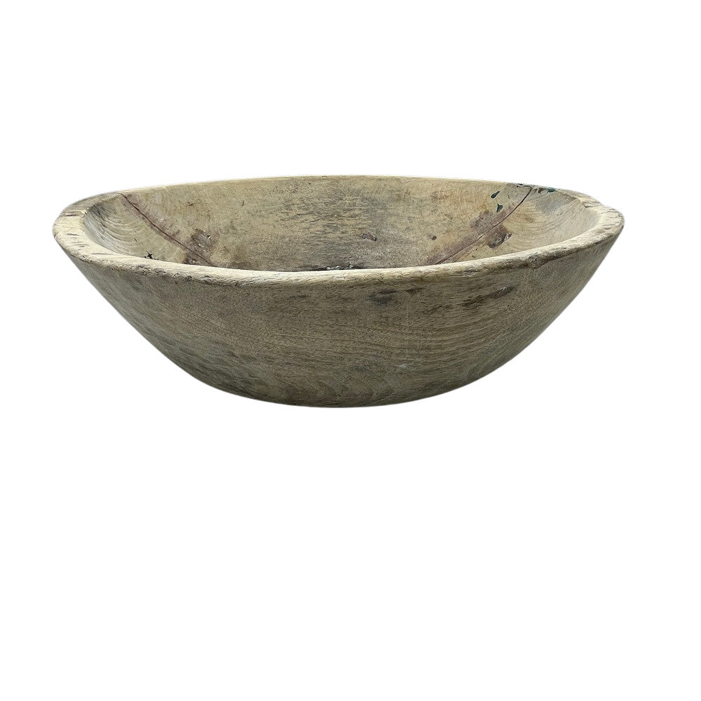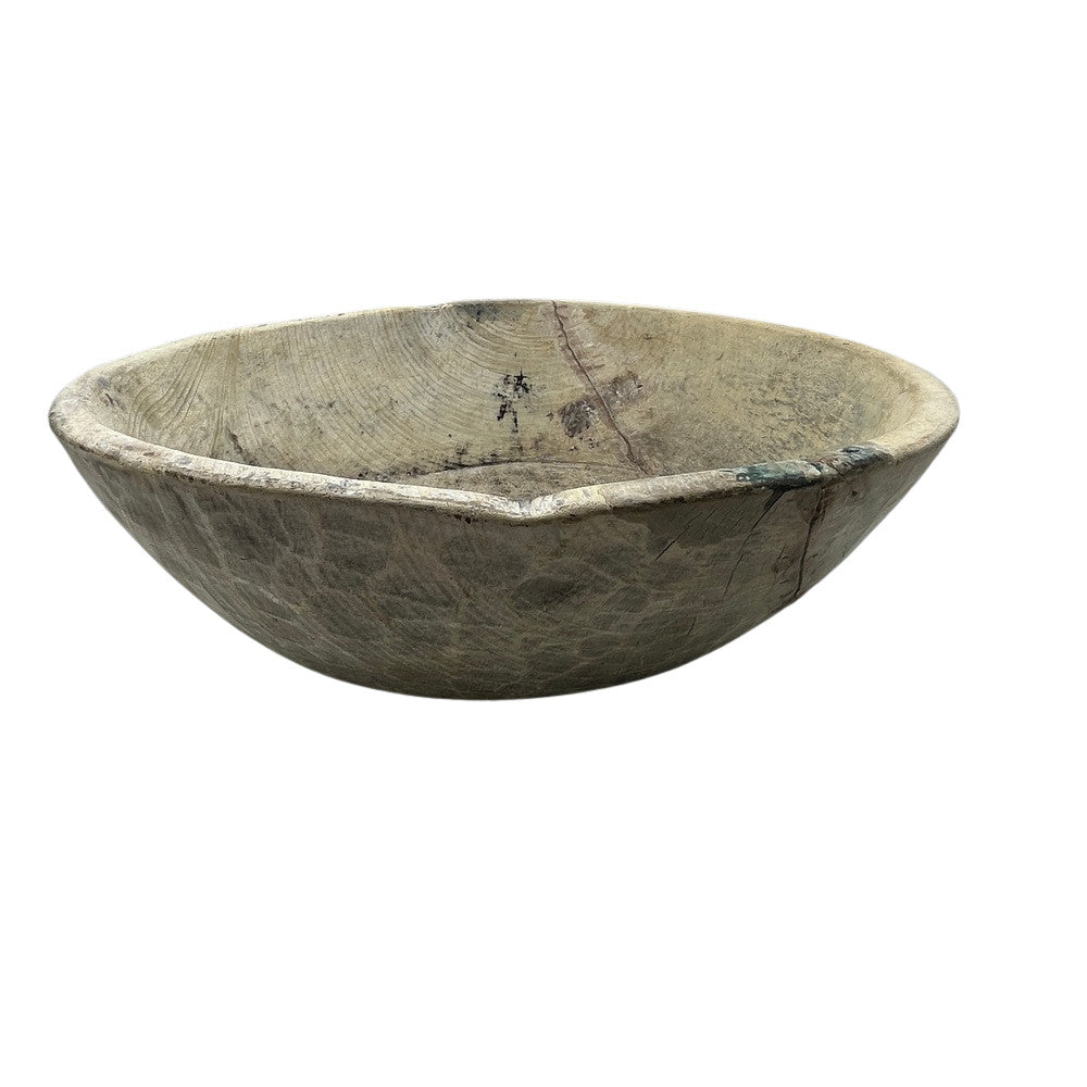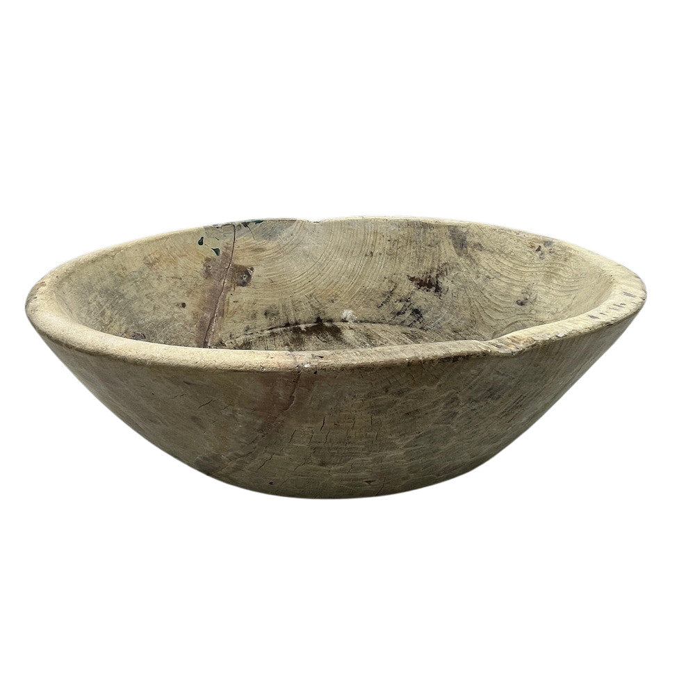 This vintage wood Parat bowl from India was once used to knead bread dough. It is a beautiful rustic piece and can be used as a decorative bowl to hold fruit or other items. A wonderful addition to your Farmhouse or Boho Chic environment.