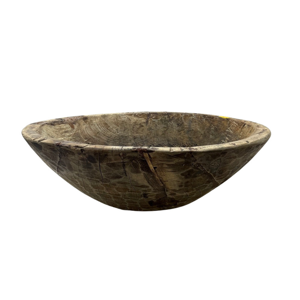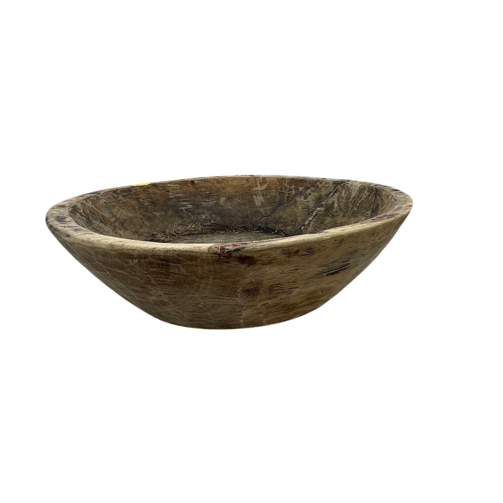 This vintage wood Parat bowl from India was once used to knead bread dough. It is a beautiful rustic piece and can be used as a decorative bowl to hold fruit or other items. A wonderful addition to your Farmhouse or Boho Chic environment.