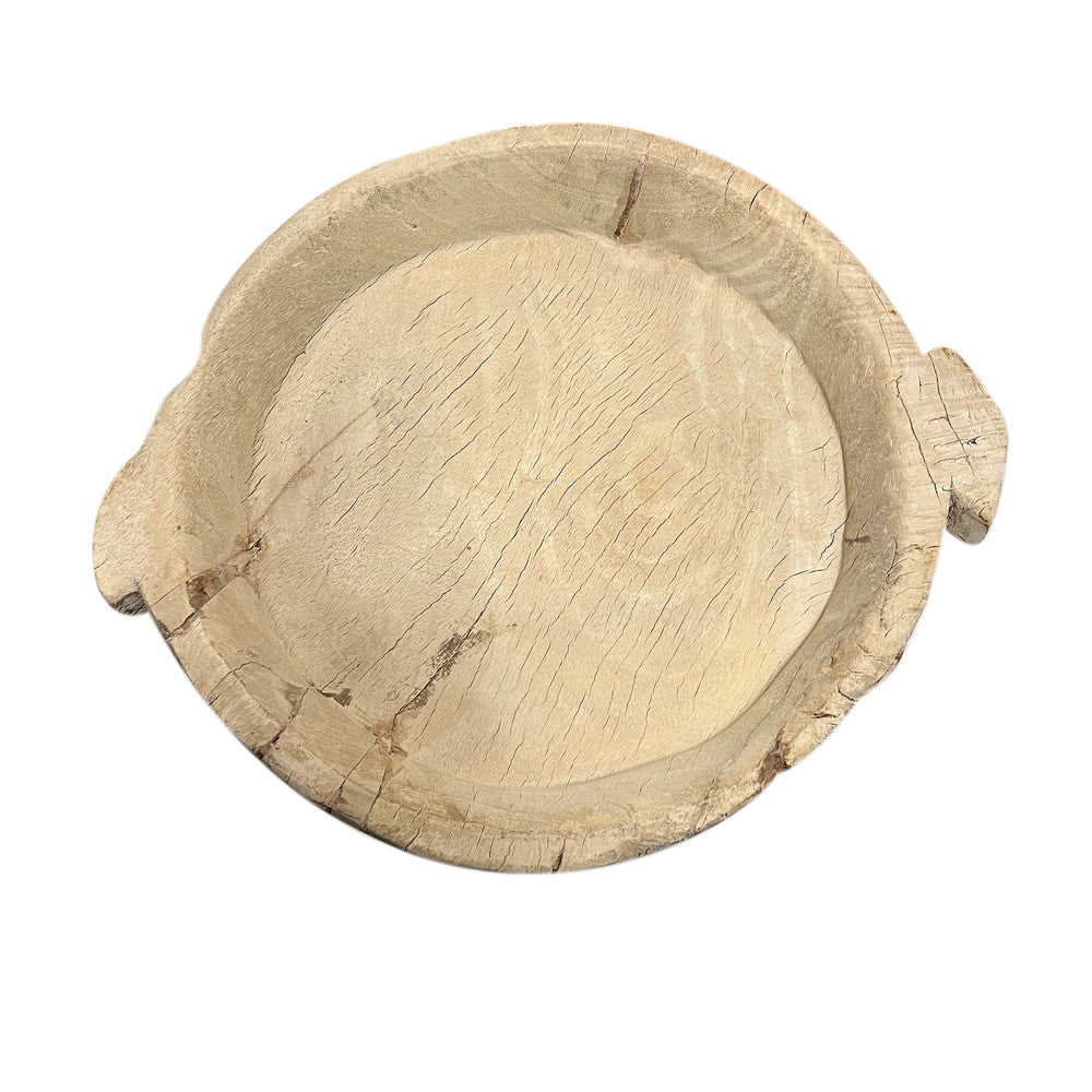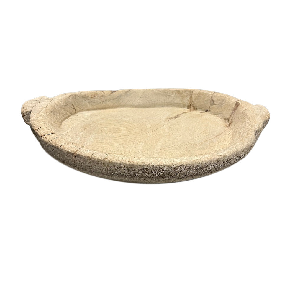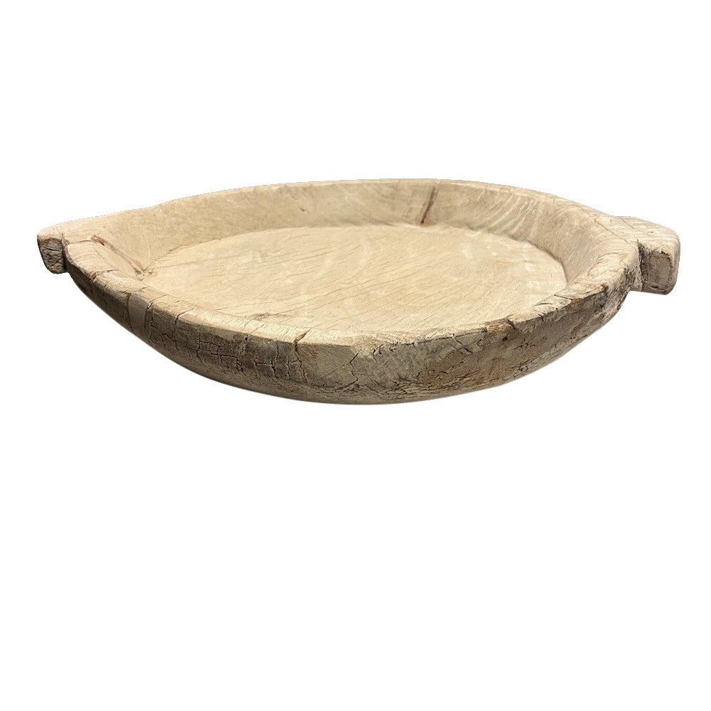 This vintage wood Parat bowl from India was once used to knead bread dough. It is a beautiful rustic piece and can be used as a decorative bowl to hold fruit or other items. A wonderful addition to your Farmhouse or Boho Chic environment.