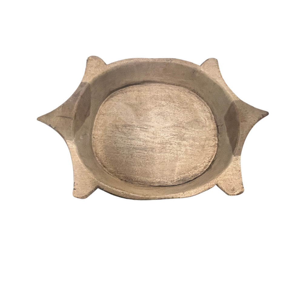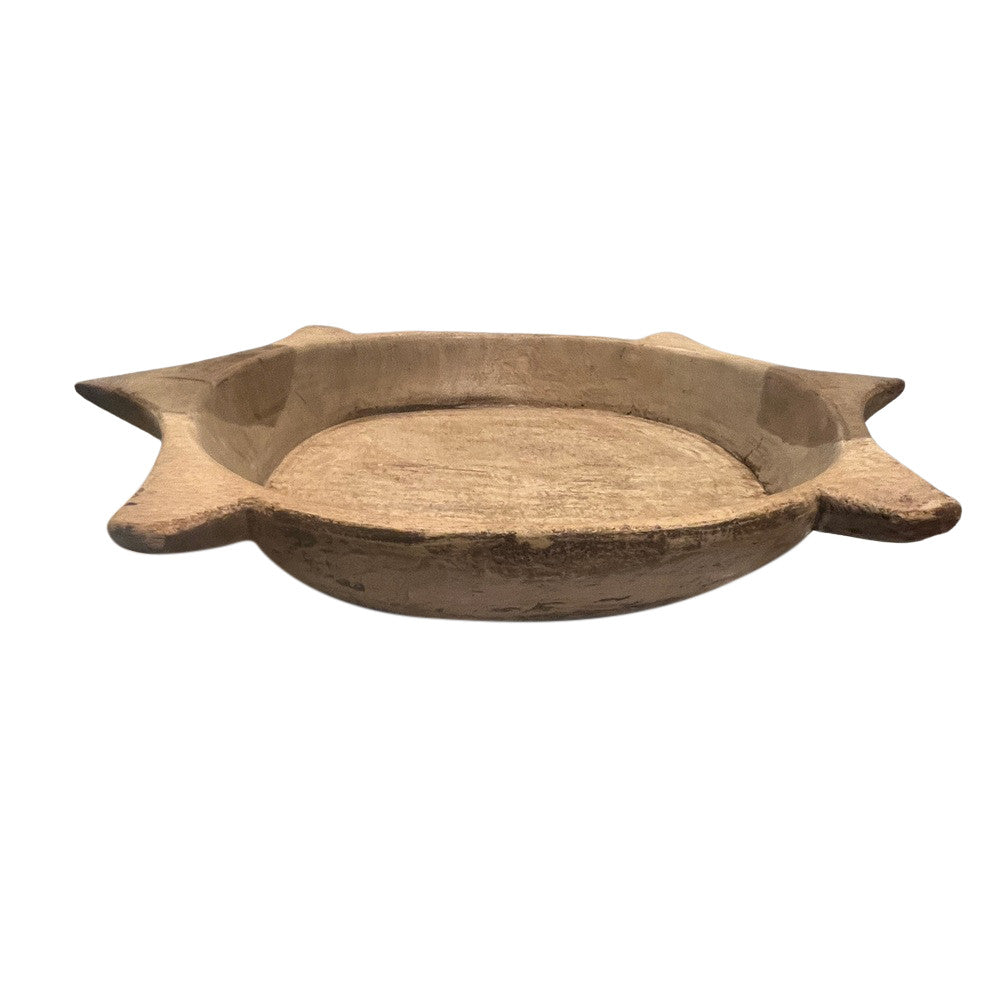 This vintage wood Parat bowl from India was once used to knead bread dough. It is a beautiful rustic piece and can be used as a decorative bowl to hold fruit or other items. A wonderful addition to your Farmhouse or Boho Chic environment.