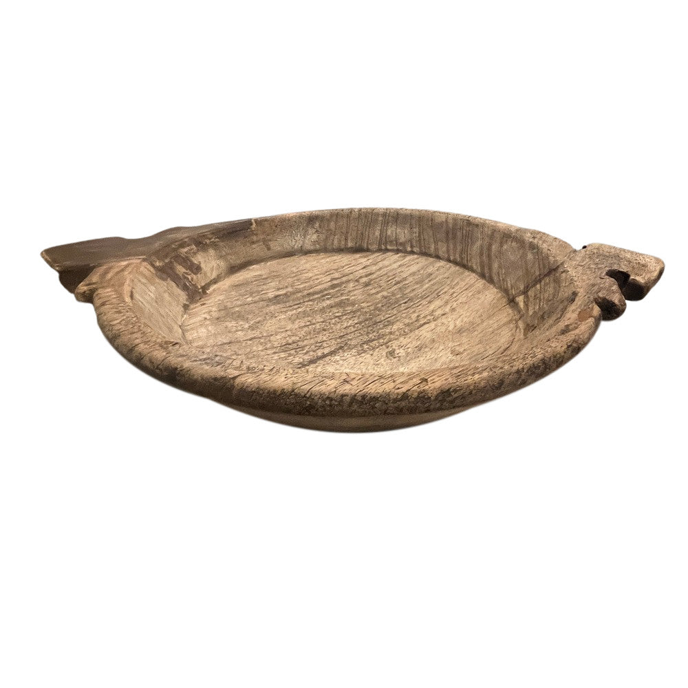 This vintage wood Parat bowl from India was once used to knead bread dough. It is a beautiful rustic piece and can be used as a decorative bowl to hold fruit or other items. A wonderful addition to your Farmhouse or Boho Chic environment.