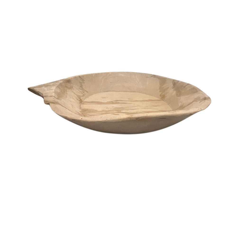 This vintage wood Parat bowl from India was once used to knead bread dough. It is a beautiful rustic piece and can be used as a decorative bowl to hold fruit or other items. A wonderful addition to your Farmhouse or Boho Chic environment.