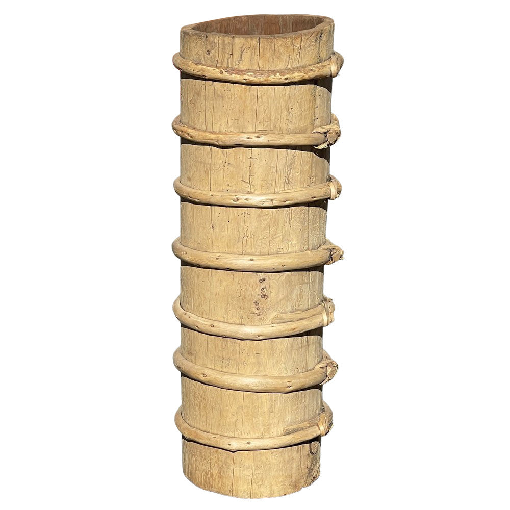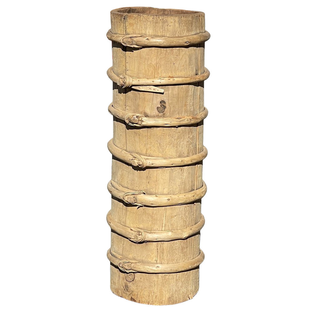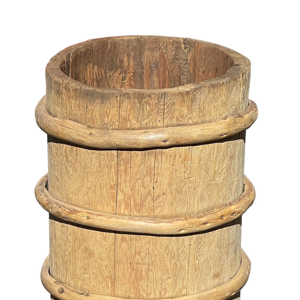 These vintage grain collection bins were once used by farmers throughout China to collect and store grains. Repurposed now as a planter or decorative storage. Its a rustic and simple look that can be used in any room in the house. They are one-of-a-kind and no two are exactly alike.