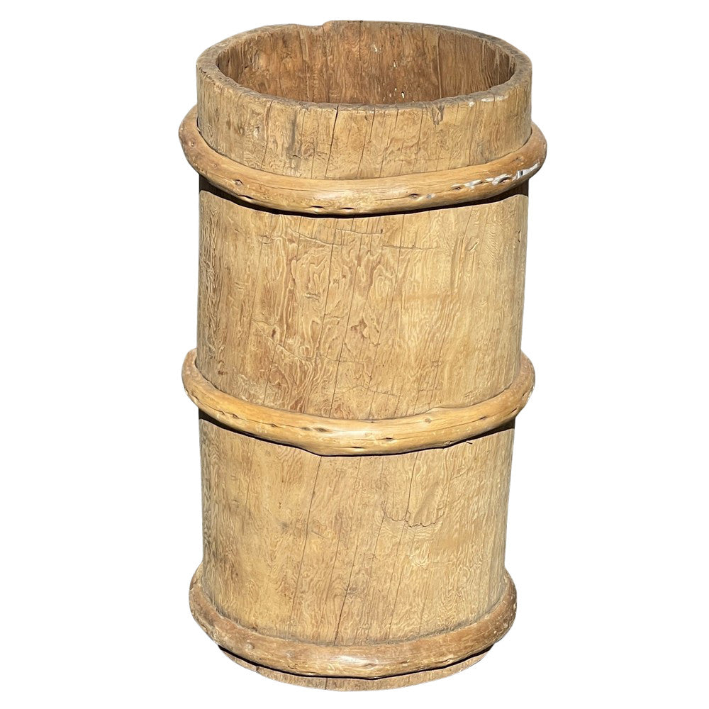 These vintage grain collection bins were once used by farmers throughout China to collect and store grains. Repurposed now as a planter or decorative storage. Its a rustic and simple look that can be used in any room in the house. They are one-of-a-kind and no two are exactly alike.