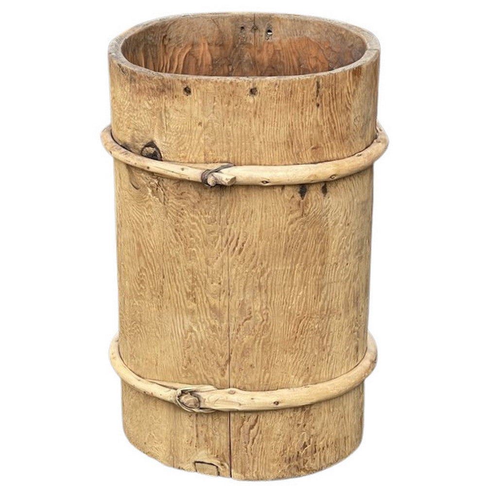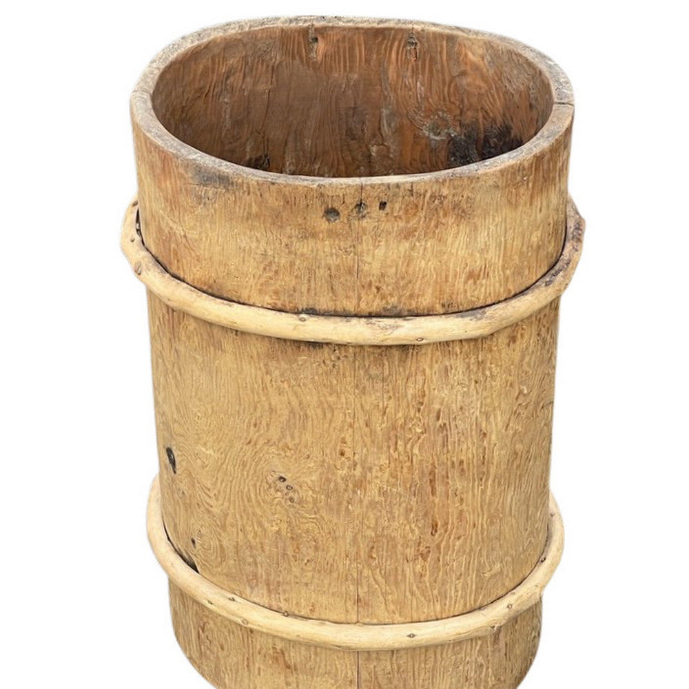 These vintage grain collection bins were once used by farmers throughout China to collect and store grains. Repurposed now as a planter or decorative storage. Its a rustic and simple look that can be used in any room in the house. They are one-of-a-kind and no two are exactly alike.